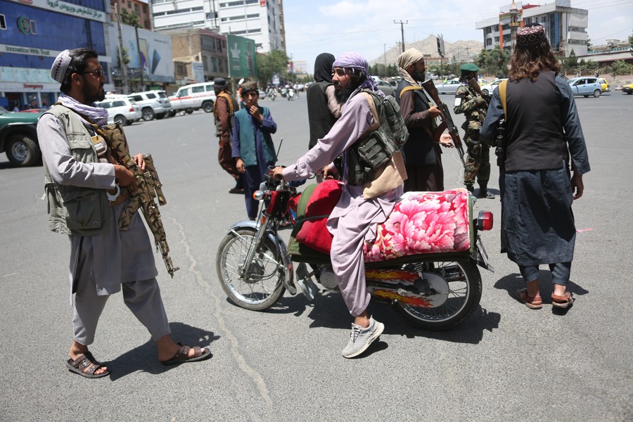 6月18日,安全人員在阿富汗喀布爾的襲擊現(xiàn)場(chǎng)附近警戒。
