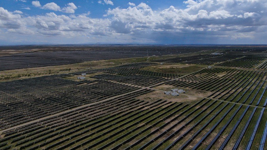 近年來,青海省海南藏族自治州依托土地資源和太陽能資源優(yōu)勢(shì),著力推進(jìn)新能源發(fā)電項(xiàng)目落地。截至目前,在位于共和縣的海南州綠色產(chǎn)業(yè)發(fā)展園區(qū),光伏、風(fēng)電、光熱新能源裝機(jī)容量超過2000萬千瓦。按測(cè)算,通過新能源發(fā)電這里每年可節(jié)約標(biāo)準(zhǔn)煤736.96萬噸,減排二氧化碳2237.2萬噸。