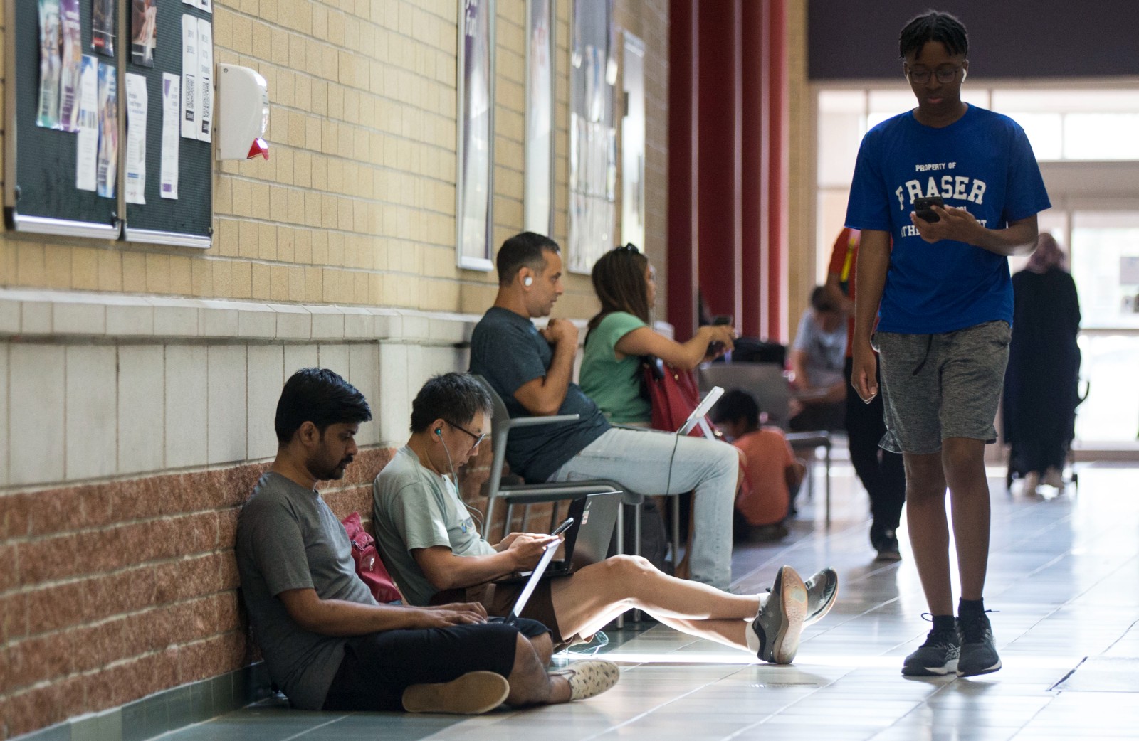 7月8日,人們?cè)诩幽么蟀泊舐允∶孜魉骷右惶幧鐓^(qū)中心利用公共Wi-Fi上網(wǎng)。