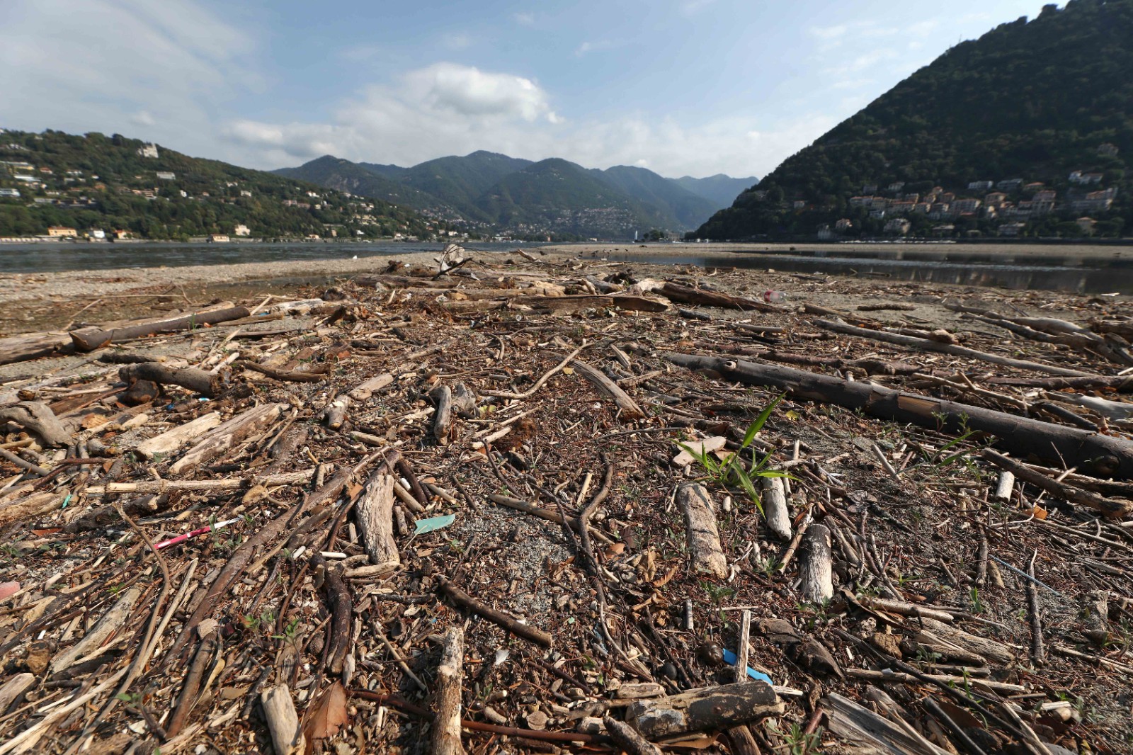 這是7月13日在意大利倫巴第大區(qū)科莫拍攝的遭遇干旱的科莫湖。