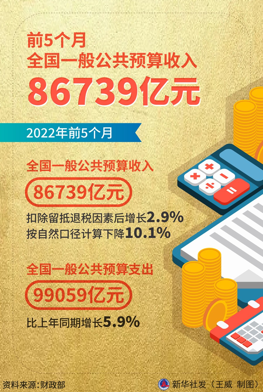 財(cái)政部6月16日發(fā)布數(shù)據(jù)顯示,今年前5個月,全國一般公共預(yù)算收入86739億元,扣除留抵退稅因素后增長2.9%,按自然口徑計(jì)算下降10.1%。