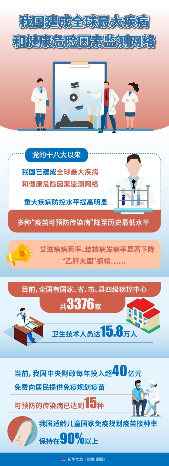 新華社記者6月17日從國(guó)家衛(wèi)生健康委新聞發(fā)布會(huì)上了解到,疾病預(yù)防控制事關(guān)人民生命健康,事關(guān)公共衛(wèi)生安全。一組數(shù)據(jù)顯示,黨的十八大以來,我國(guó)已建成全球最大疾病和健康危險(xiǎn)因素監(jiān)測(cè)網(wǎng)絡(luò),重大疾病防控水平提高明顯,多種“疫苗可預(yù)防傳染病”降至歷史最低水平,艾滋病病死率、結(jié)核病發(fā)病率顯著下降,“乙肝大國(guó)”摘帽……