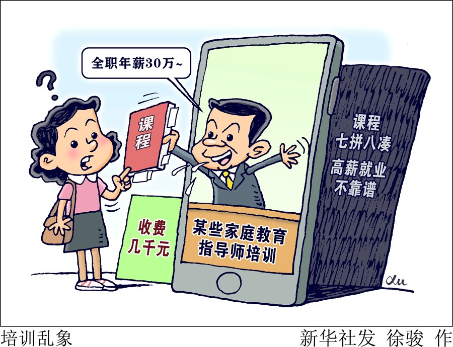 一段時間以來,家庭教育指導師培訓的廣告頻頻出現(xiàn)在一些微信公眾號、網頁、短視頻平臺,“全職年薪30萬”“兼職咨詢費500元/小時”“市場需求多,崗位缺口大”……類似廣告吸引了不少人參加培訓考證。