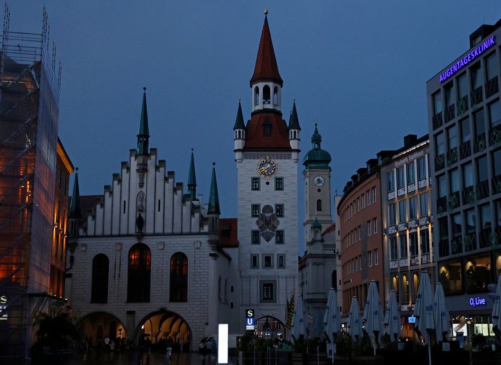 這是7月30日晚拍攝的德國(guó)慕尼黑老市政廳。