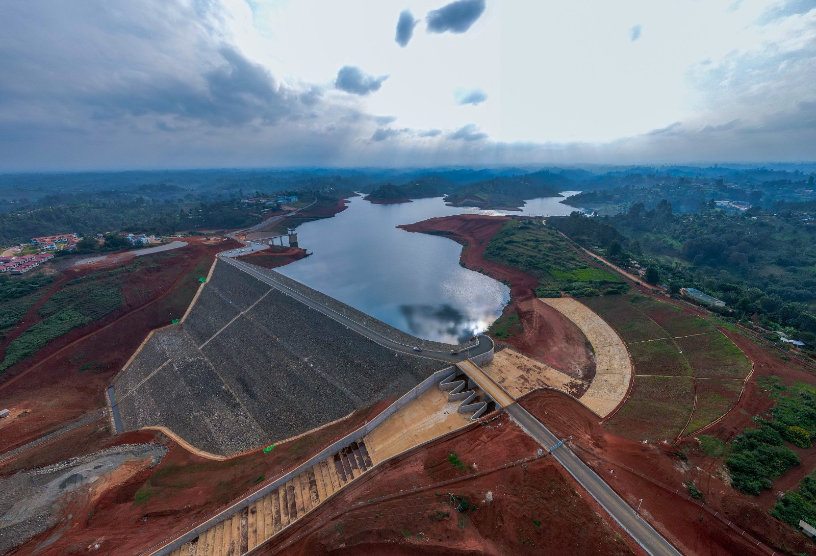 這是8月1日在距肯尼亞內(nèi)羅畢約75公里的基安布郡拍攝的卡瑞曼紐大壩(航拍照片)。
