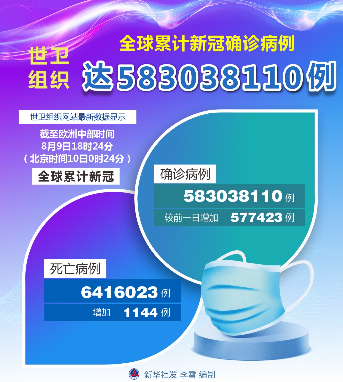 (圖表)世衛(wèi)組織:全球累計新冠確診病例達(dá)583038110例