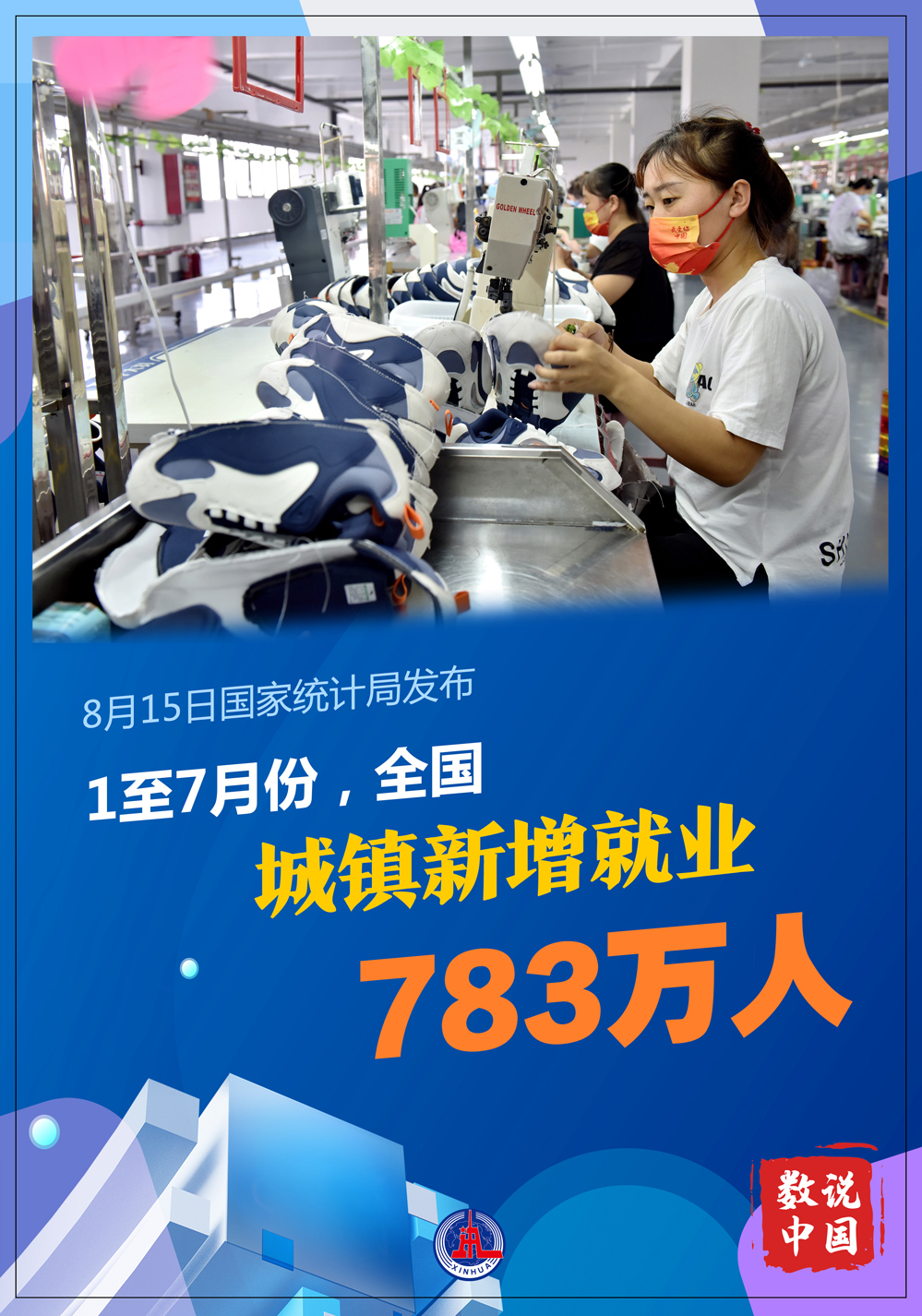 國家統(tǒng)計局8月15日發(fā)布數(shù)據(jù)顯示,1至7月份,全國城鎮(zhèn)新增就業(yè)783萬人。
