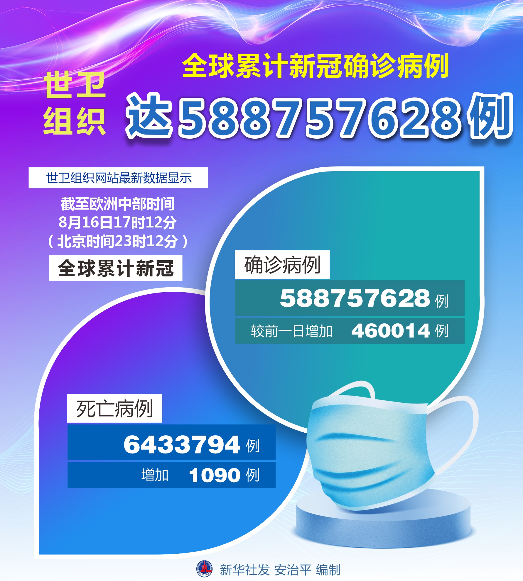 世界衛(wèi)生組織8月16日公布的最新數(shù)據(jù)顯示,全球累計新冠確診病例達(dá)588757628例。