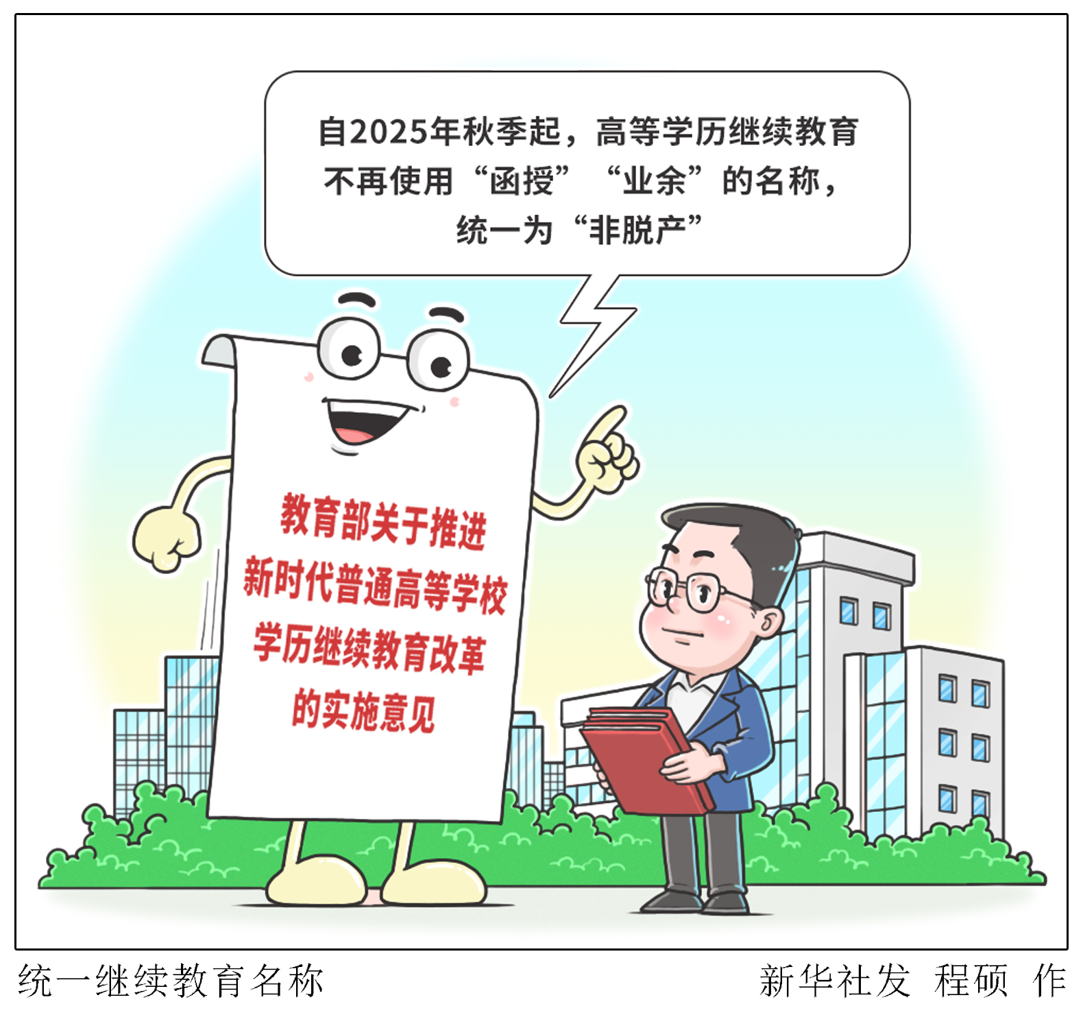 記者8月17日從教育部獲悉,《教育部關(guān)于推進新時代普通高等學(xué)校學(xué)歷繼續(xù)教育改革的實施意見》近日印發(fā),要求自2025年秋季起,高等學(xué)歷繼續(xù)教育不再使用“函授”“業(yè)余”的名稱,統(tǒng)一為“非脫產(chǎn)”,主辦高校可根據(jù)專業(yè)特點和學(xué)生需求等,靈活采取線上線下相結(jié)合形式教學(xué)。