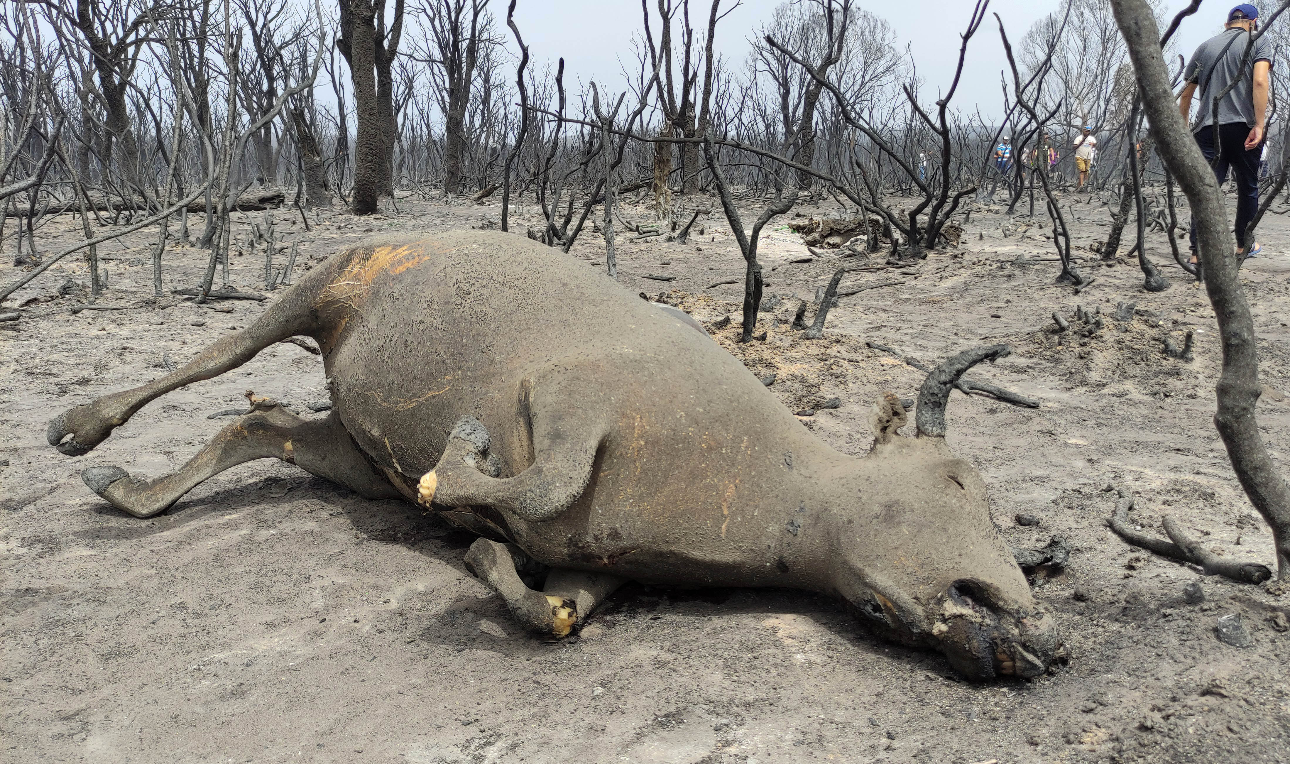 8月18日,在阿爾及利亞泰賴夫省,牲畜被森林火災(zāi)燒死。