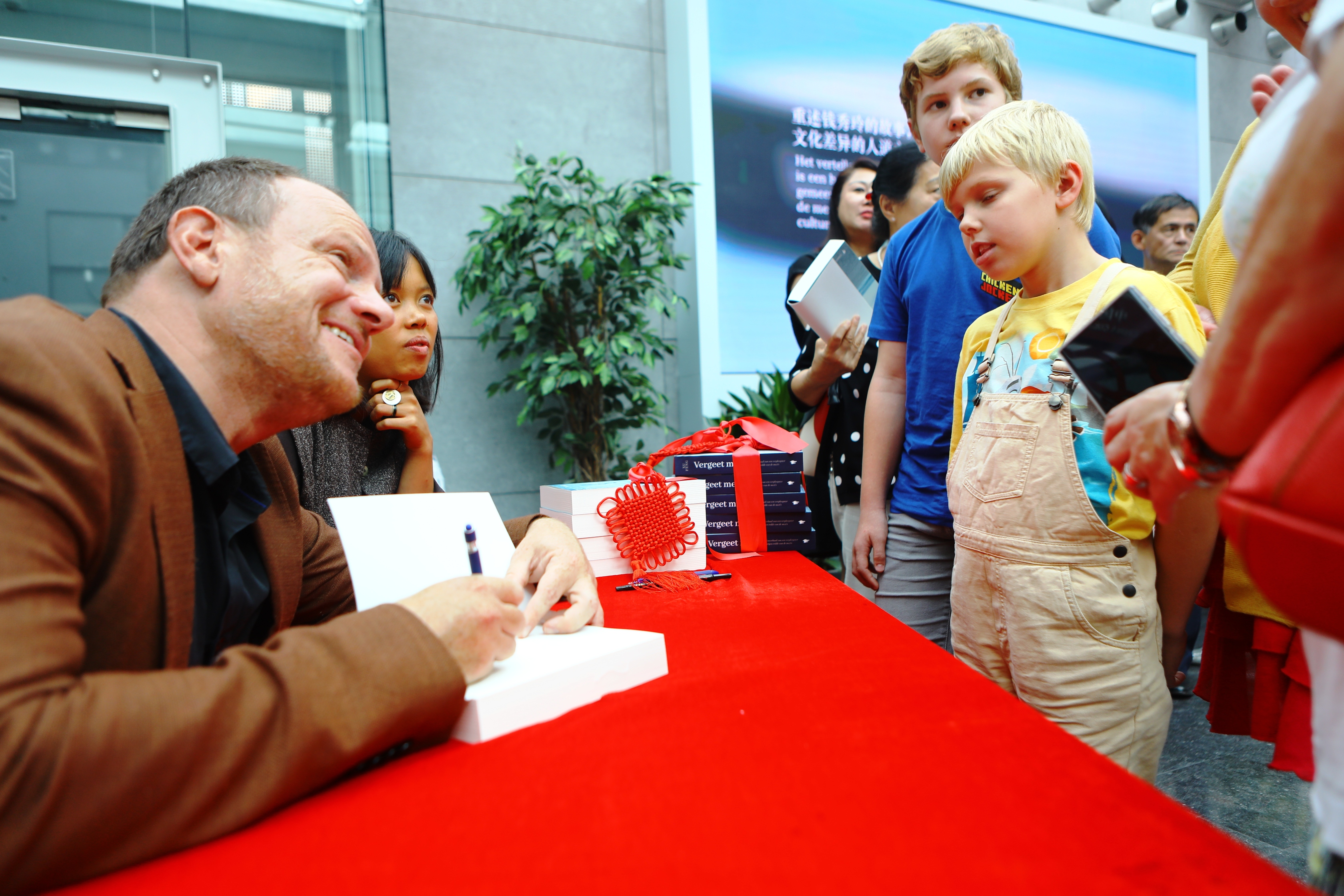 8月17日,在比利時(shí)布魯塞爾中國文化中心,出版社代表以及譯者在《忘記我》荷蘭語版新書發(fā)布儀式上簽名贈(zèng)書。