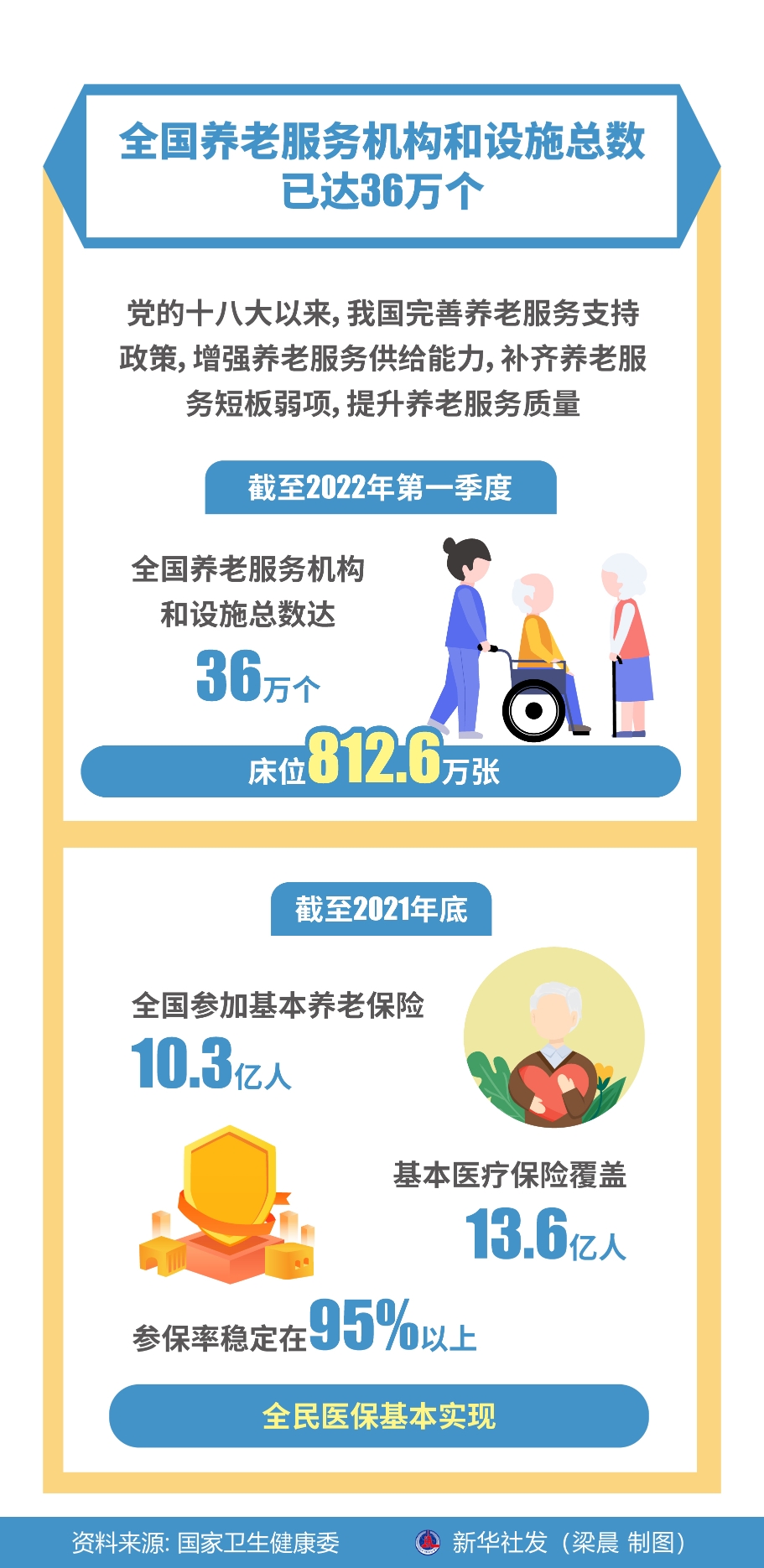 記者從國家衛(wèi)生健康委9月20日舉行的新聞發(fā)布會上了解到,黨的十八大以來,我國完善養(yǎng)老服務(wù)支持政策,增強養(yǎng)老服務(wù)供給能力,補齊養(yǎng)老服務(wù)短板弱項,提升養(yǎng)老服務(wù)質(zhì)量。截至2022年第一季度,全國養(yǎng)老服務(wù)機(jī)構(gòu)和設(shè)施總數(shù)達(dá)36萬個,床位812.6萬張。