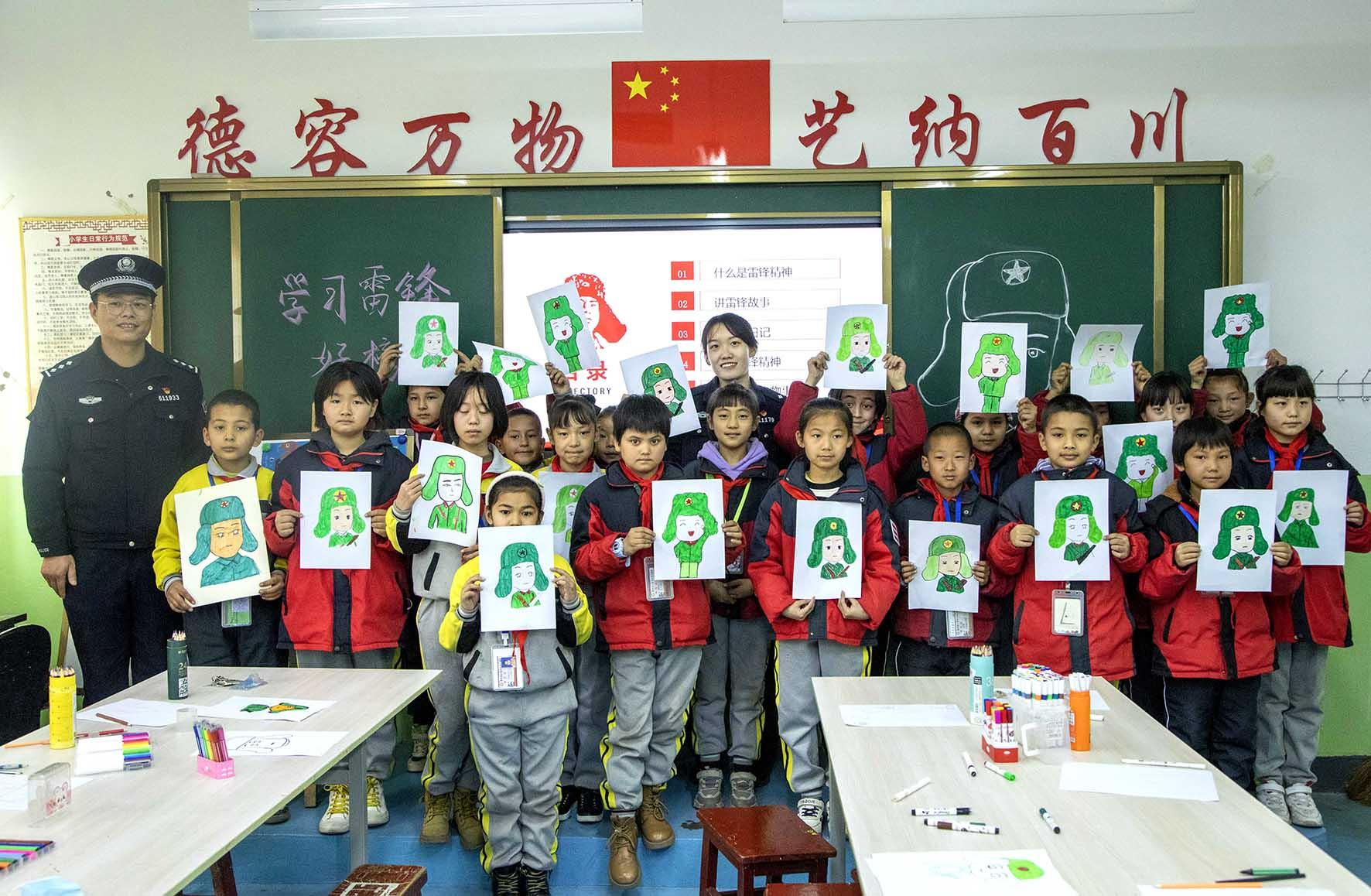 近日,新疆伊犁邊境管理支隊(duì)三道河邊境派出所民警走進(jìn)轄區(qū)小學(xué)開展“大手拉小手 一起畫雷鋒”活動。
