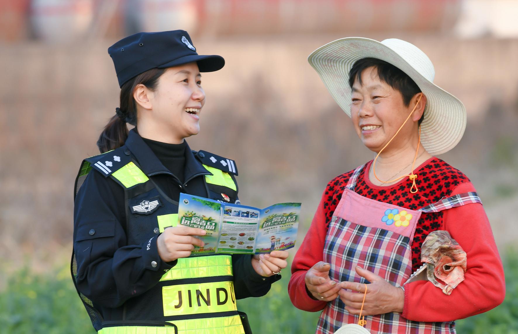 3月7日,安徽省馬鞍山市和縣公安局禁毒大隊女民警在田間開展“春季毒品源植物禁種”普法宣傳。