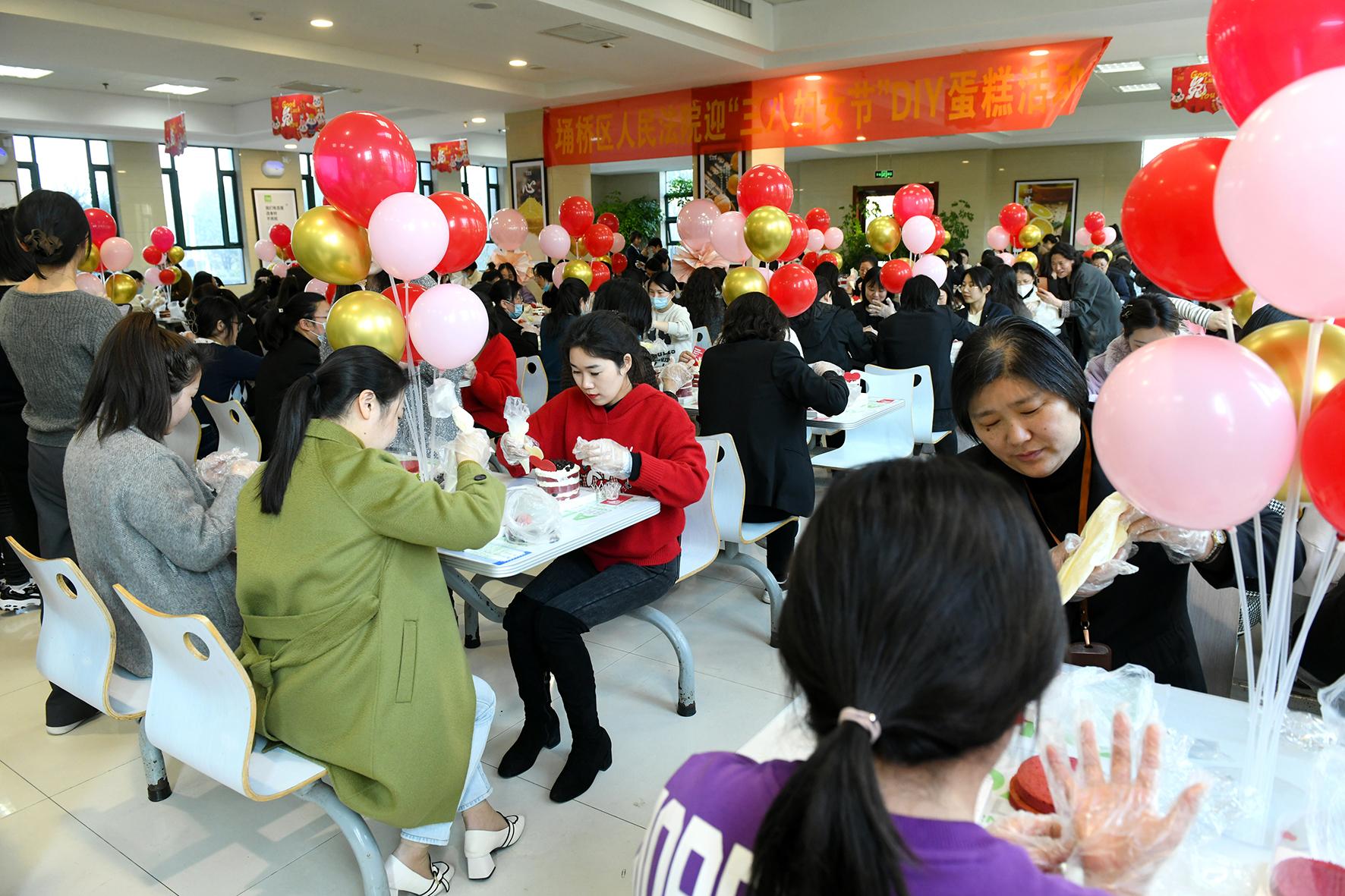 3月7日,安徽省宿州市埇橋區(qū)人民法院工會組織全體女干警舉辦迎“三八”主題活動,女干警和后勤人員在糕點技師帶領(lǐng)下學(xué)習(xí)蛋糕制作技藝。