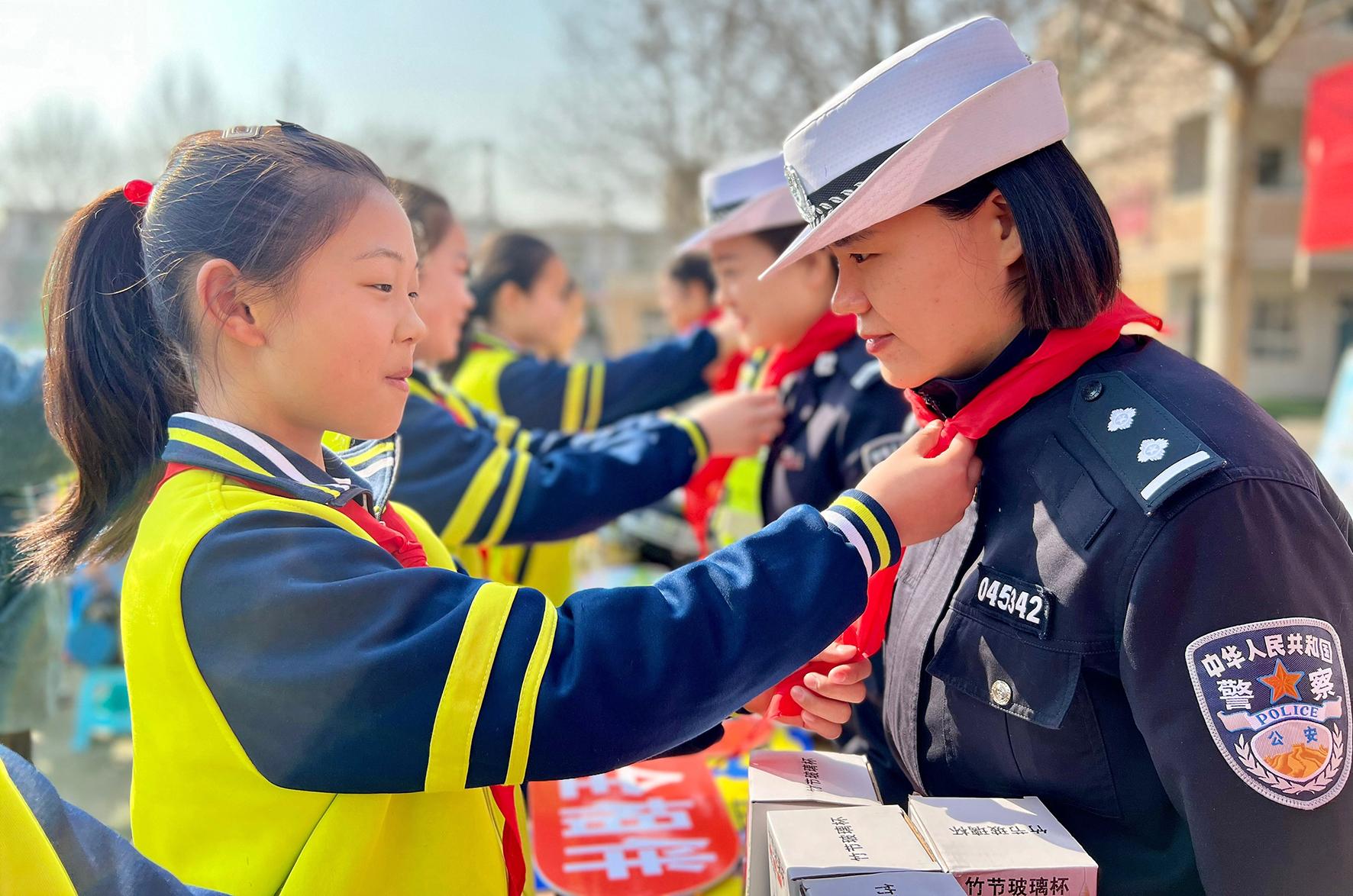 3月7日,陜西省渭南市蒲城縣公安局交通管理大隊女民警走進(jìn)祥塬小學(xué)開展交通安全“春季守護(hù)行動”。