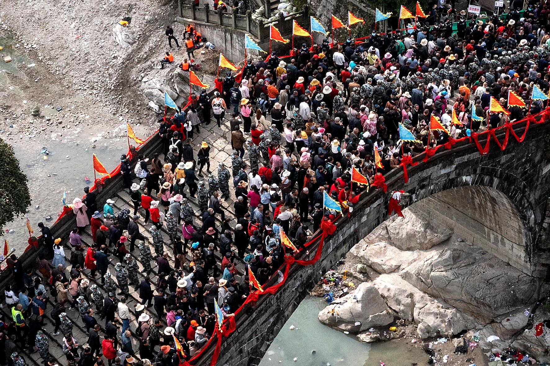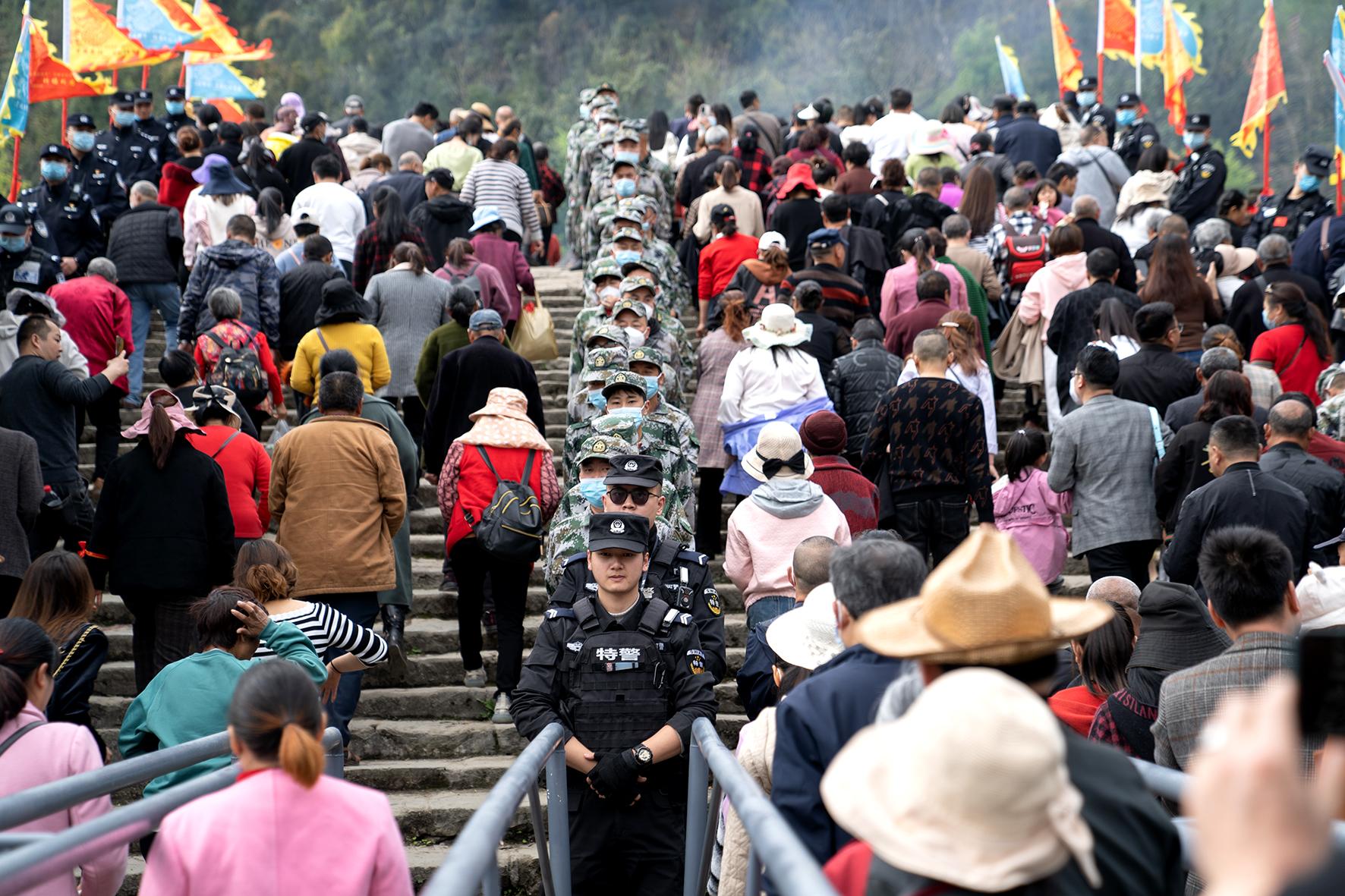 3月21日,四川省綿陽(yáng)市安州區(qū)雎水太平橋開(kāi)展春社踩橋大型民俗活動(dòng),來(lái)自成都、德陽(yáng)、綿陽(yáng)及周邊縣市的游客從四面八方涌上雎水鎮(zhèn)的太平橋“踩橋”祈福。綿陽(yáng)市公安局設(shè)立治安卡口15個(gè)、治安執(zhí)勤點(diǎn)位13個(gè),出動(dòng)1300余名警力,全力守護(hù)現(xiàn)場(chǎng)秩序。