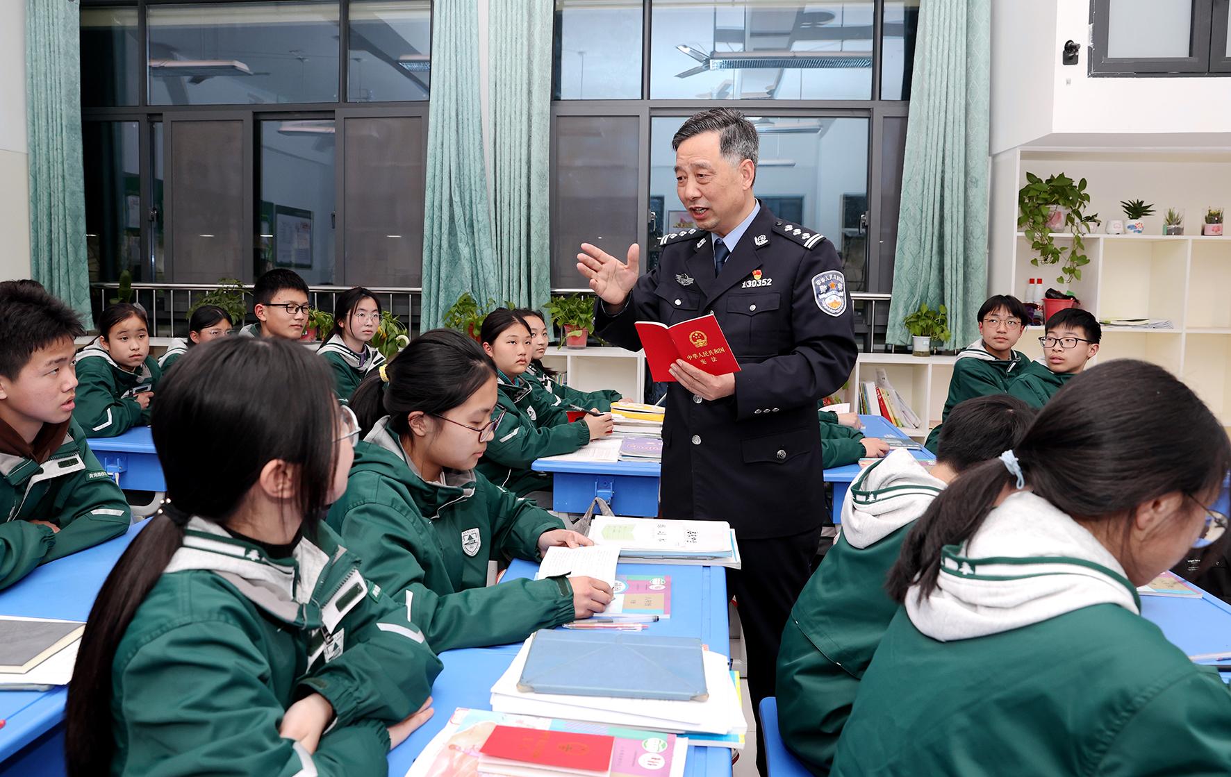 3月22日,江蘇省宿遷市公安局民警利用學生晚課時間,開展法治宣教活動,守護校園平安,助力學生健康成長。