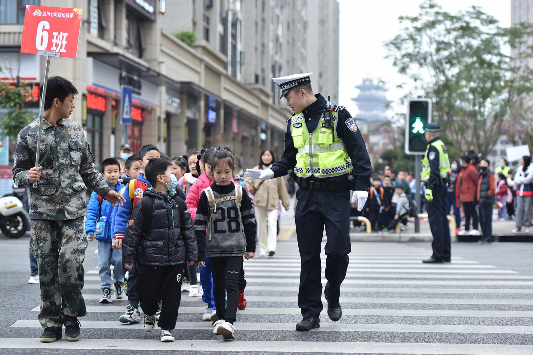 3月27日,四川省綿陽(yáng)市多所小學(xué)組織學(xué)生開(kāi)展春游活動(dòng),綿陽(yáng)市公安局交警支隊(duì)直屬一大隊(duì)增派警力在學(xué)校周邊、復(fù)雜路段指揮護(hù)送師生步行或乘車(chē)出行,確保安全和道路暢通。