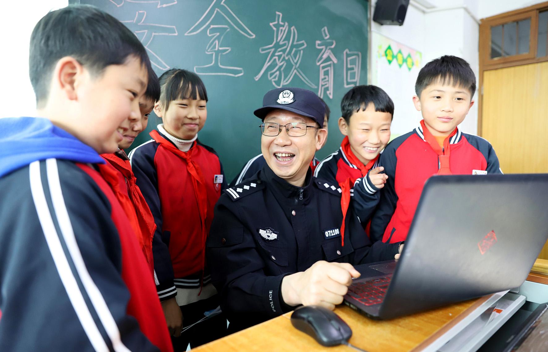 3月27日,浙江省臺(tái)州市公安局路橋分局路南派出所民警走進(jìn)轄區(qū)天長(zhǎng)學(xué)校開展安全教育。
