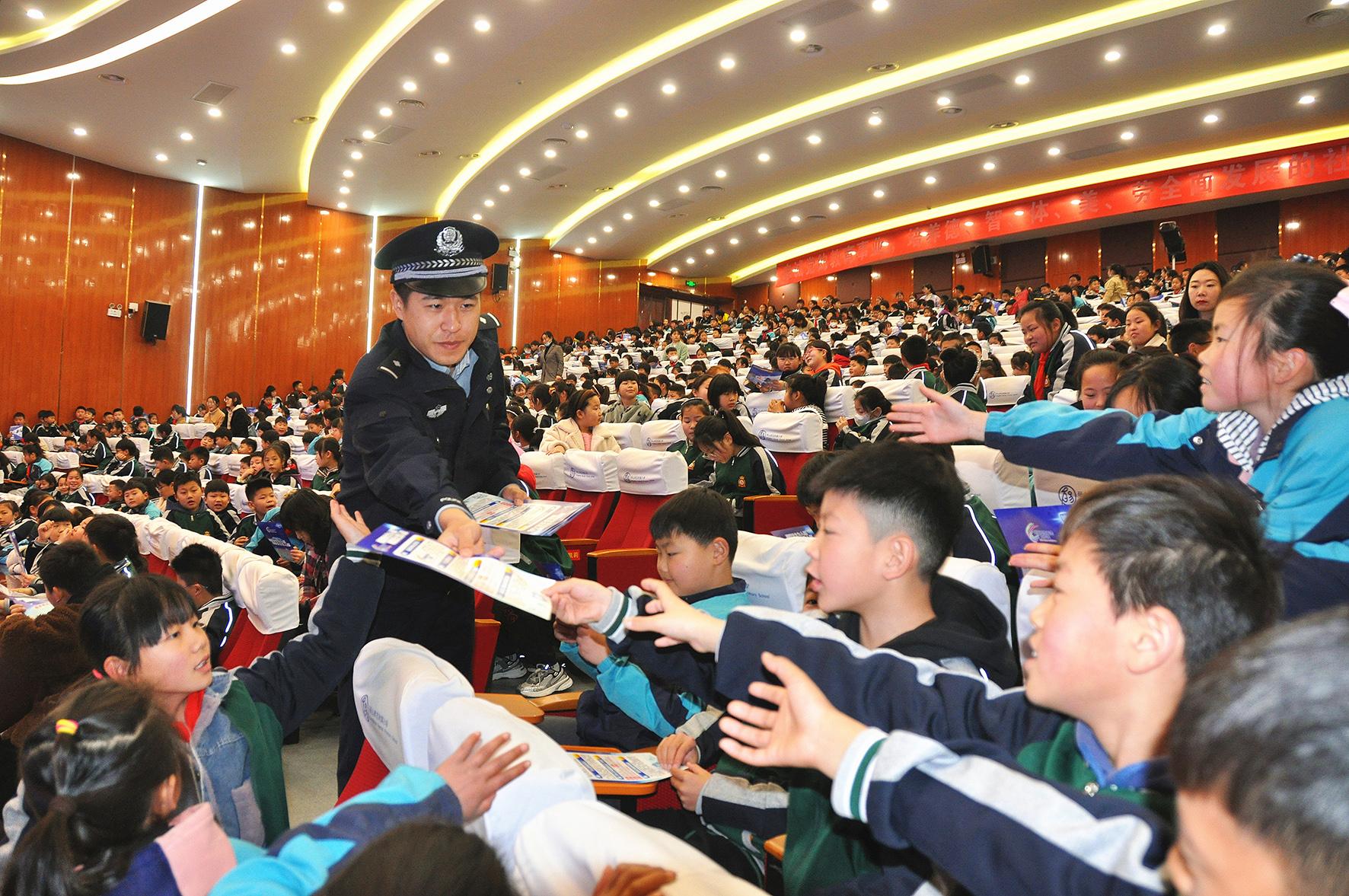 3月27日,江蘇省徐州市民主實(shí)驗(yàn)學(xué)校與徐州市公安局交警支隊(duì)鼓樓大隊(duì)二中隊(duì)聯(lián)合開展以“交通安全知識(shí)進(jìn)校園”為主題的宣傳教育活動(dòng),引導(dǎo)小學(xué)生知危險(xiǎn)會(huì)避險(xiǎn)、安全文明出行。