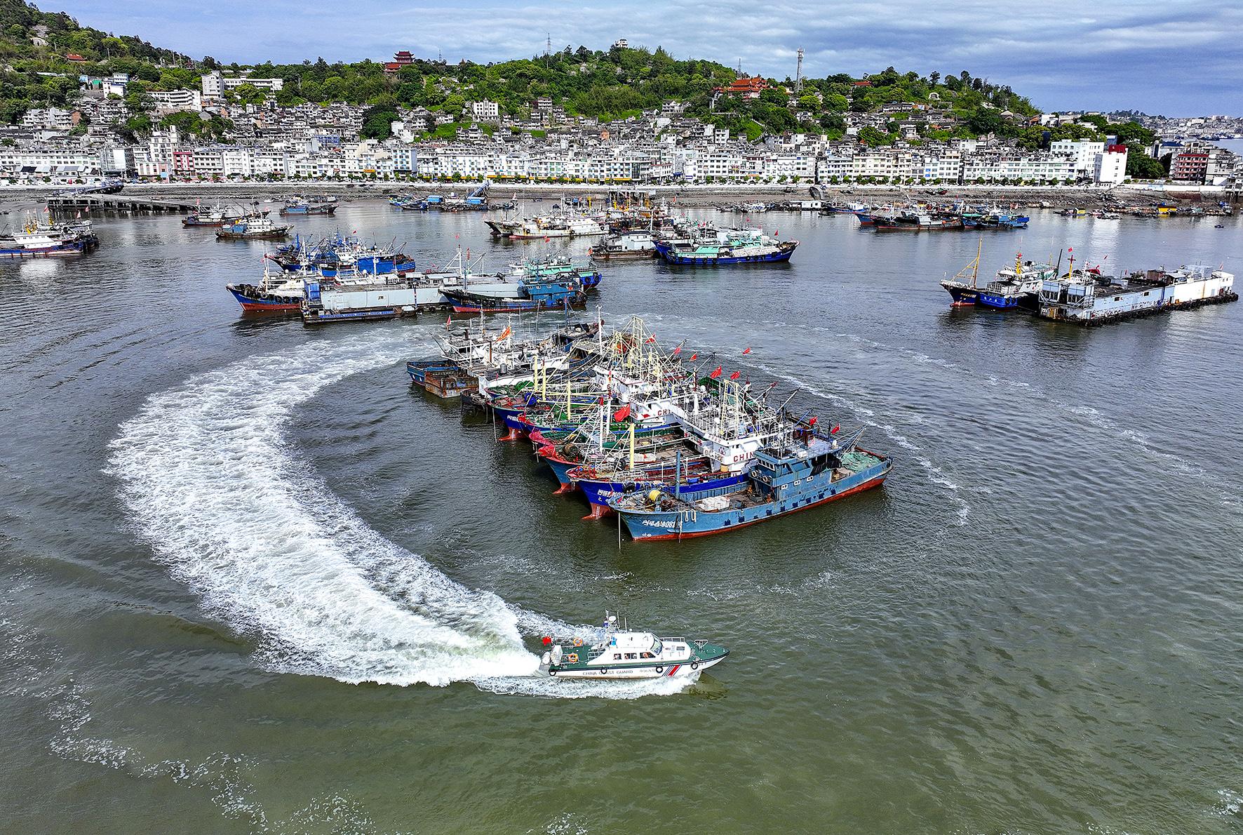 5月5日,福建省寧德海警局福鼎工作站巡邏艇正在福鼎市沙埕中心漁港巡查。休漁期伊始,當(dāng)?shù)睾>⒑Q笈c漁業(yè)、海事、公安等部門強(qiáng)化聯(lián)動(dòng),大力開展專項(xiàng)執(zhí)法檢查和海上巡查,全力維護(hù)伏季休漁期間海上安全。