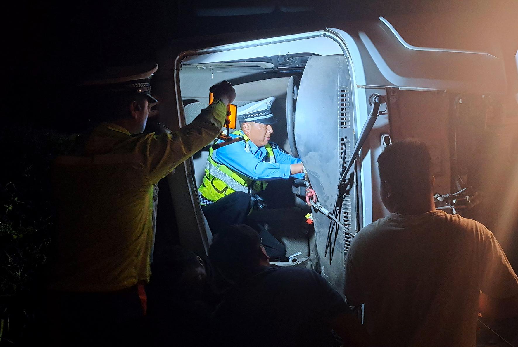 5月13日20時許,安徽省舒城縣公安局交管大隊五中隊接群眾報警,G346國道五顯鎮(zhèn)韋洼村段發(fā)生事故。接警后,民警迅速趕往現(xiàn)場與群眾一起將受傷駕駛員救出。