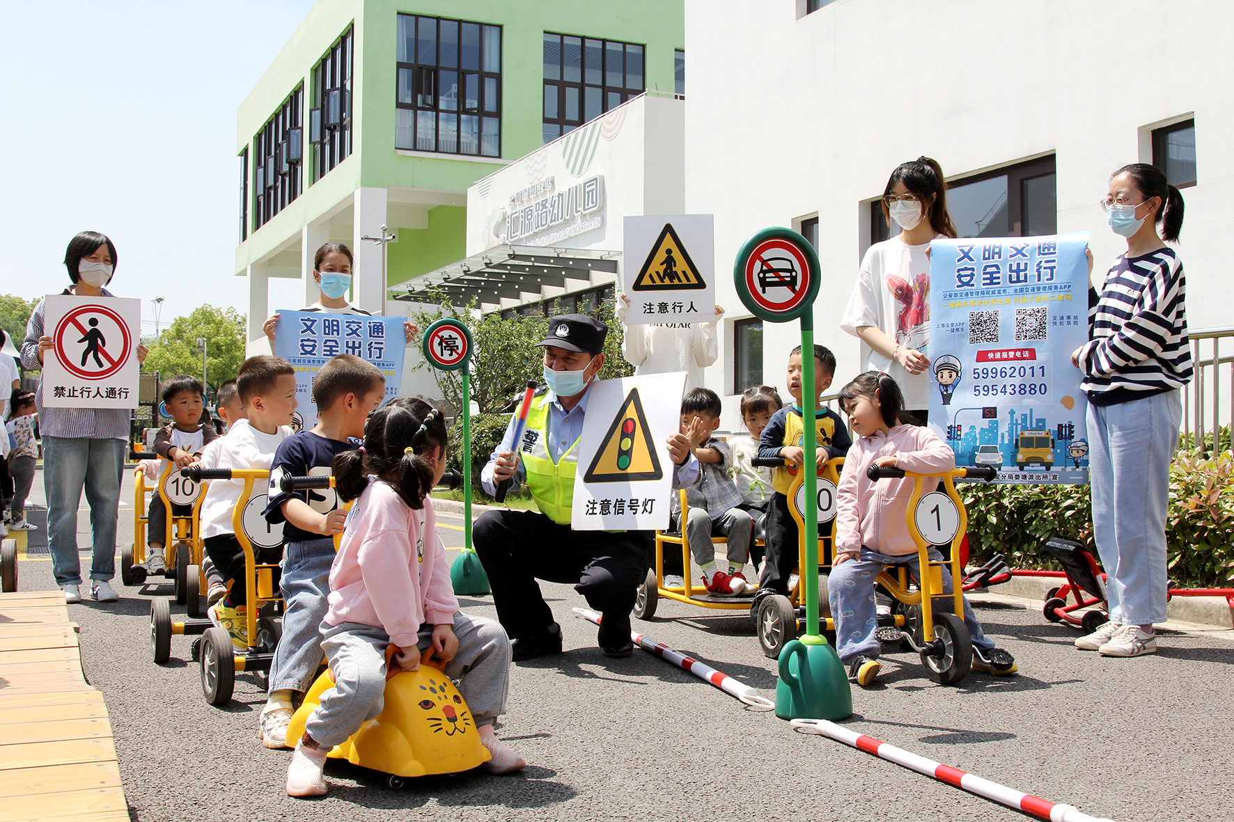 5月25日,上海市公安局嘉定分局婁塘派出所民警走進(jìn)匯源路幼兒園,以安全兒歌、圖片標(biāo)識(shí)、趣味搶答和交通情景游戲等形式,讓小朋友在游戲中學(xué)習(xí)交通法規(guī)。
