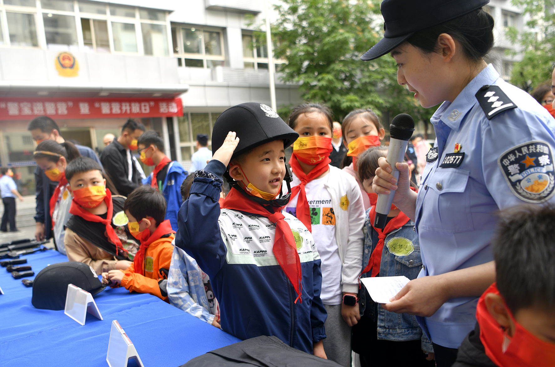 5月28日,山東省濟(jì)南市公安局市中區(qū)分局十六里河派出所聯(lián)合特巡警大隊在領(lǐng)秀城警務(wù)工作站舉行警營開放日活動,邀請小學(xué)生走進(jìn)警營體驗參觀。
