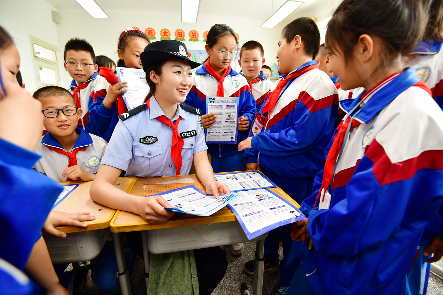 5月30日,河南省鄭州市公安局金水分局民警帶著禮物來到轄區(qū)河南省實(shí)驗(yàn)小學(xué),與同學(xué)們一起歡慶“六一”。