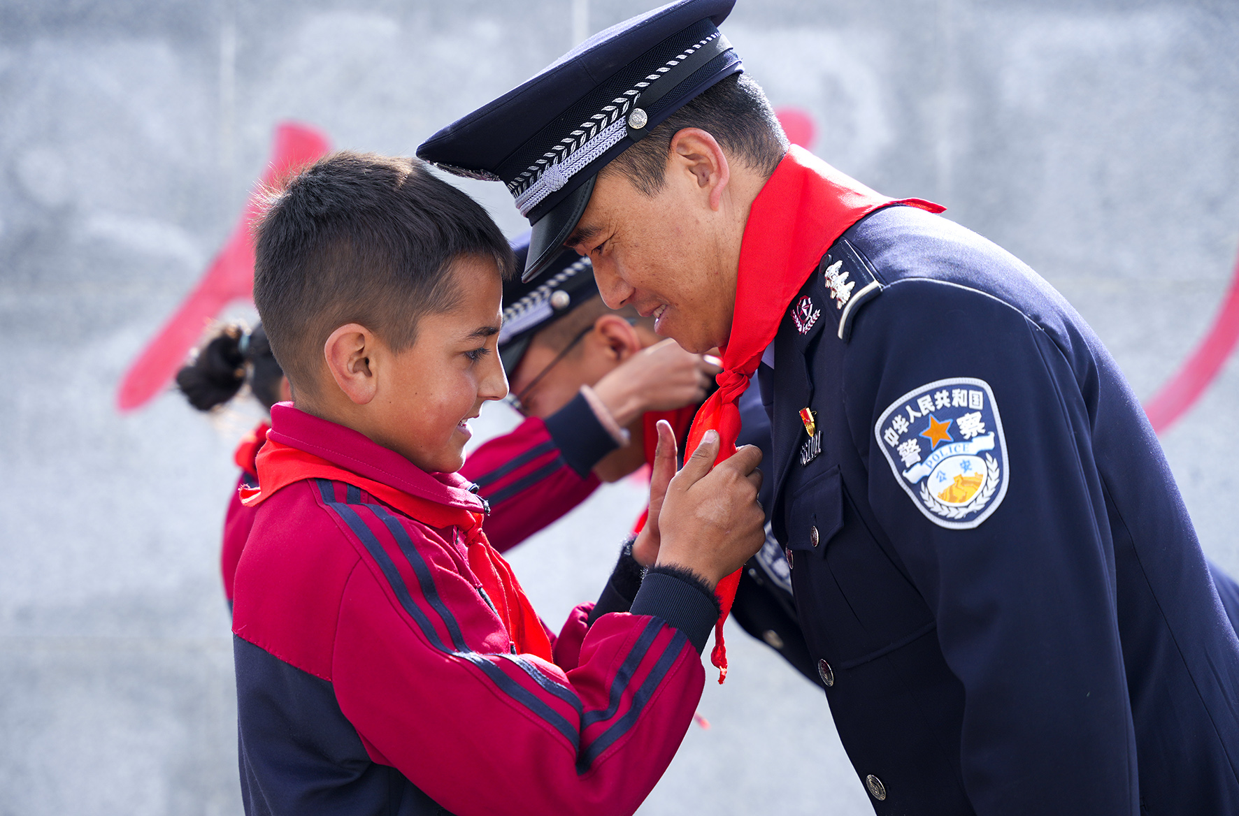5月29日,新疆阿勒泰邊境管理支隊(duì)恰勒什海邊境派出所邀請駐地吉木乃鎮(zhèn)薩爾吾楞牧業(yè)寄宿學(xué)校學(xué)生一起巡護(hù)邊境線,零距離感受國門的神圣和界碑的莊嚴(yán)。