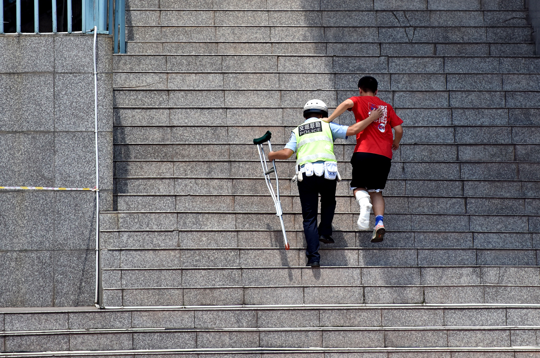 6月7日,江蘇省宜興市公安局民警護(hù)送行動不便的考生進(jìn)入考點。