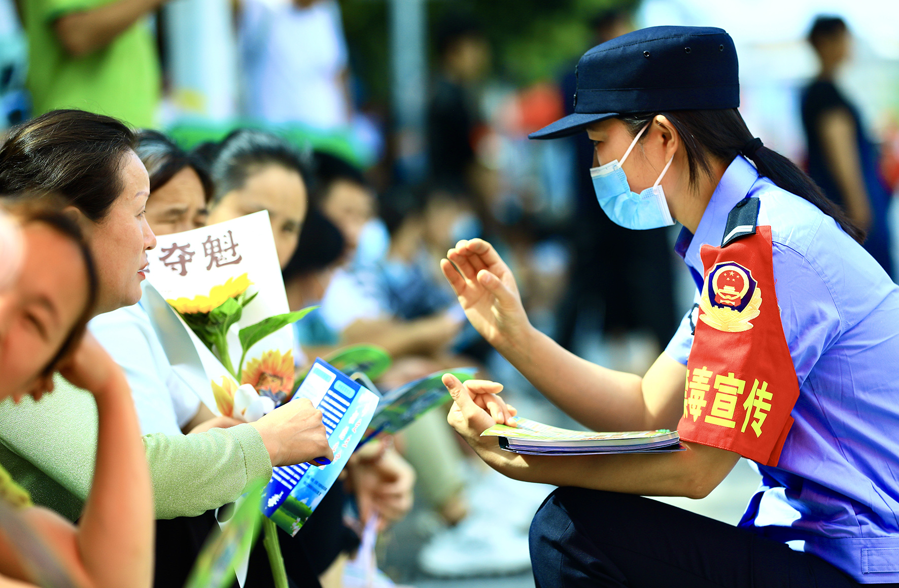 6月7日,安徽省亳州市公安局禁毒支隊民輔警到亳州一中考點開展禁毒宣傳活動。
