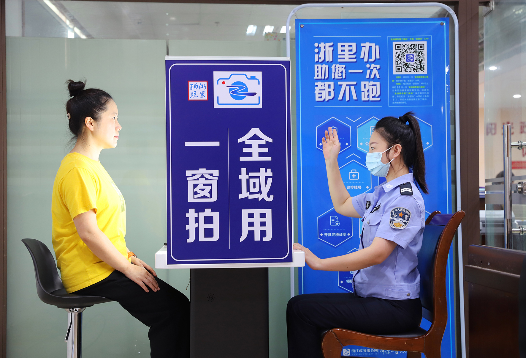 6月13日,在浙江省臺州市路橋區(qū)金清鎮(zhèn)為民服務(wù)中心公安窗口,警務(wù)人員利用“浙里拍照”系統(tǒng)為群眾拍攝身份證照片。近期,臺州市路橋區(qū)在服務(wù)民生辦實事中實施“一窗通拍,全域應(yīng)用”舉措,公安、人社、衛(wèi)健、教體、司法等25個部門建立協(xié)同合作,圍繞176個涉照事項,通過“浙里辦”系統(tǒng)共享12種規(guī)格、背景底色的證照,實現(xiàn)身份證、出入境證件、駕駛證、社會保障卡、老年人優(yōu)待證、保安員證等涉照業(yè)務(wù)系統(tǒng)暢通應(yīng)用。