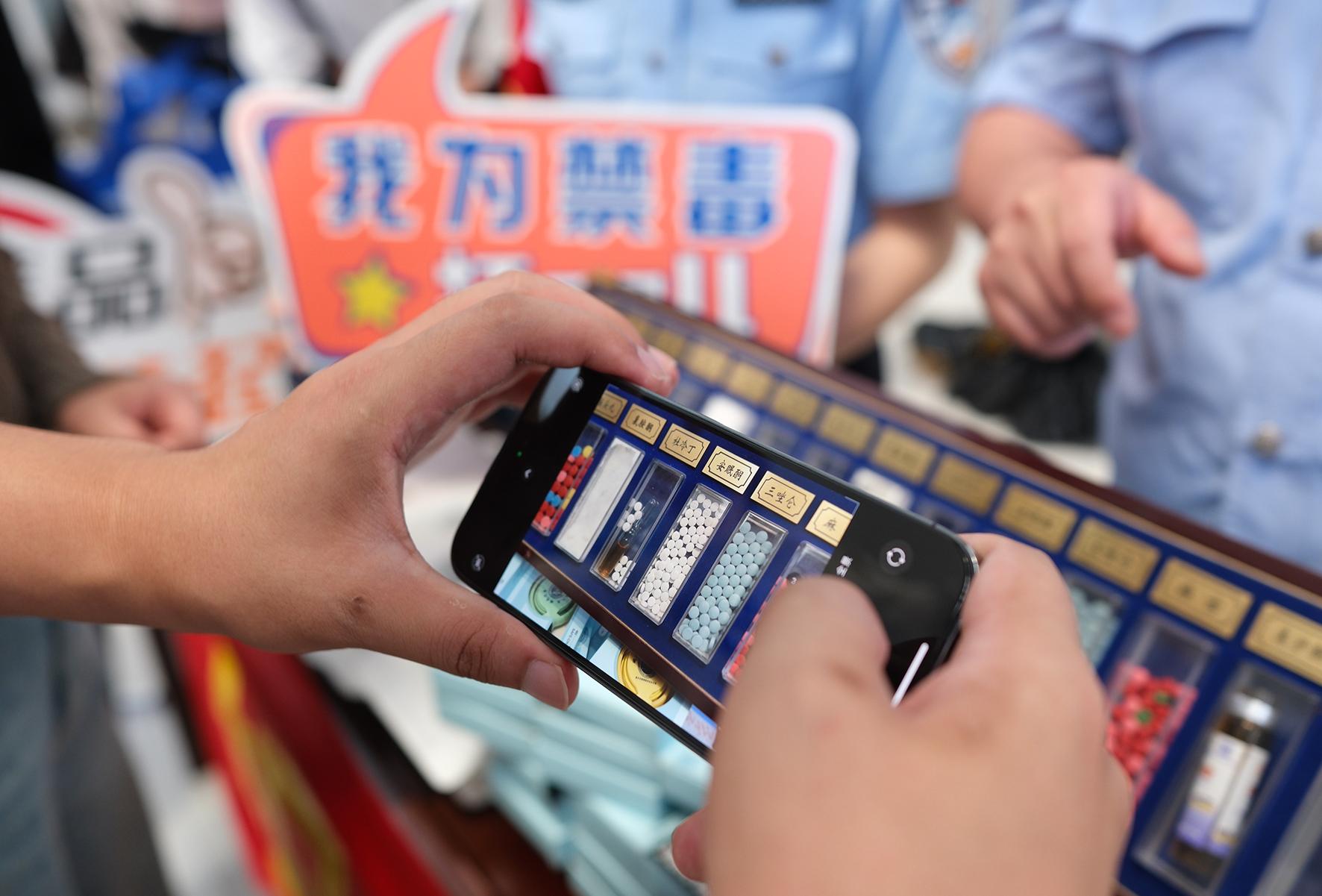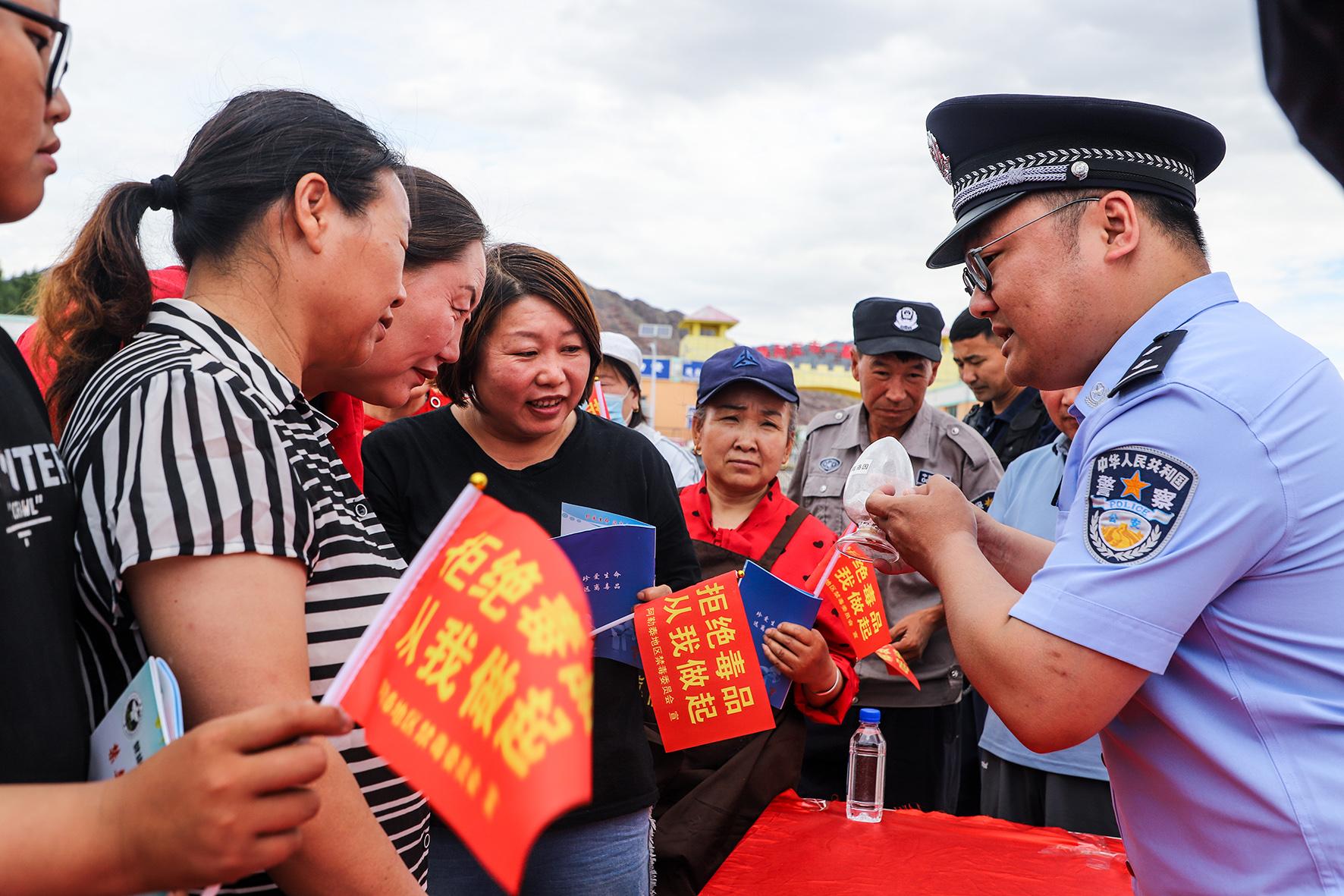 6月23日,新疆阿勒泰邊境管理支隊塘巴勒邊境檢查站聯(lián)合駐地派出所、海關、禁毒大隊等單位,在塔克什肯口岸商貿城廣場舉行以“健康人生 綠色無毒”為主題的禁毒宣傳教育活動。