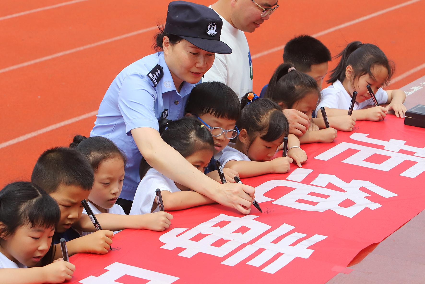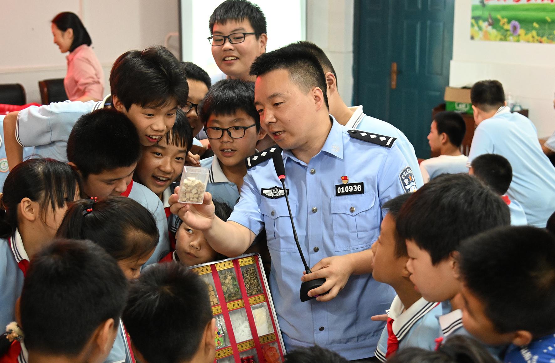 6月25日,浙江省臺州市公安局路南派出所民警走進路南小學,通過觀看禁毒展板、講述禁毒故事、“拒絕毒品”橫幅簽字等形式,對學生進行禁毒教育。