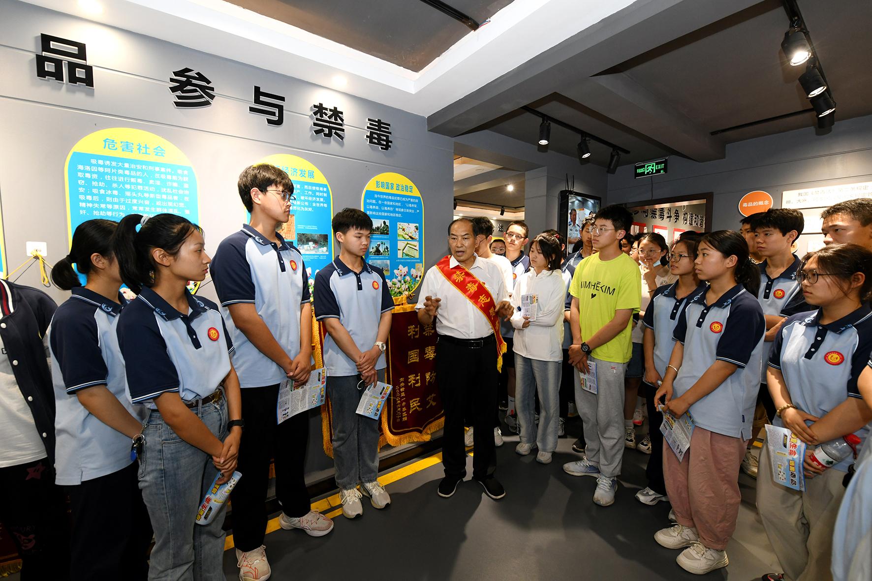 6月21日,安徽省宿州市宿城一中同學來到全國首個“家庭模式”禁毒防艾宣傳教育基地,開展“健康人生 綠色無毒”校外法治課主題活動。
