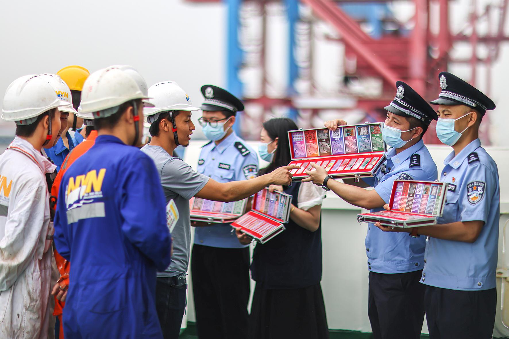 6月25日,太倉出入境邊防檢查站聯(lián)合太倉市公安局禁毒大隊、璜涇派出所等單位,在太倉港口岸開展“健康人生 綠色無毒”普法宣傳活動。