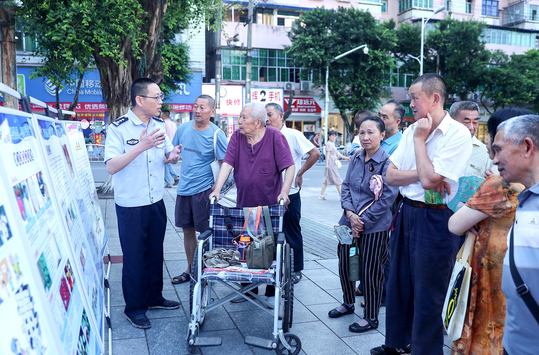 6月25日,四川省華鎣市公安局聯(lián)合團市委組織民警和青年志愿者,巡回到流動人員相對較多的廣場公園、街頭巷尾,宣傳禁毒知識及預防新型電信網(wǎng)絡詐騙知識。