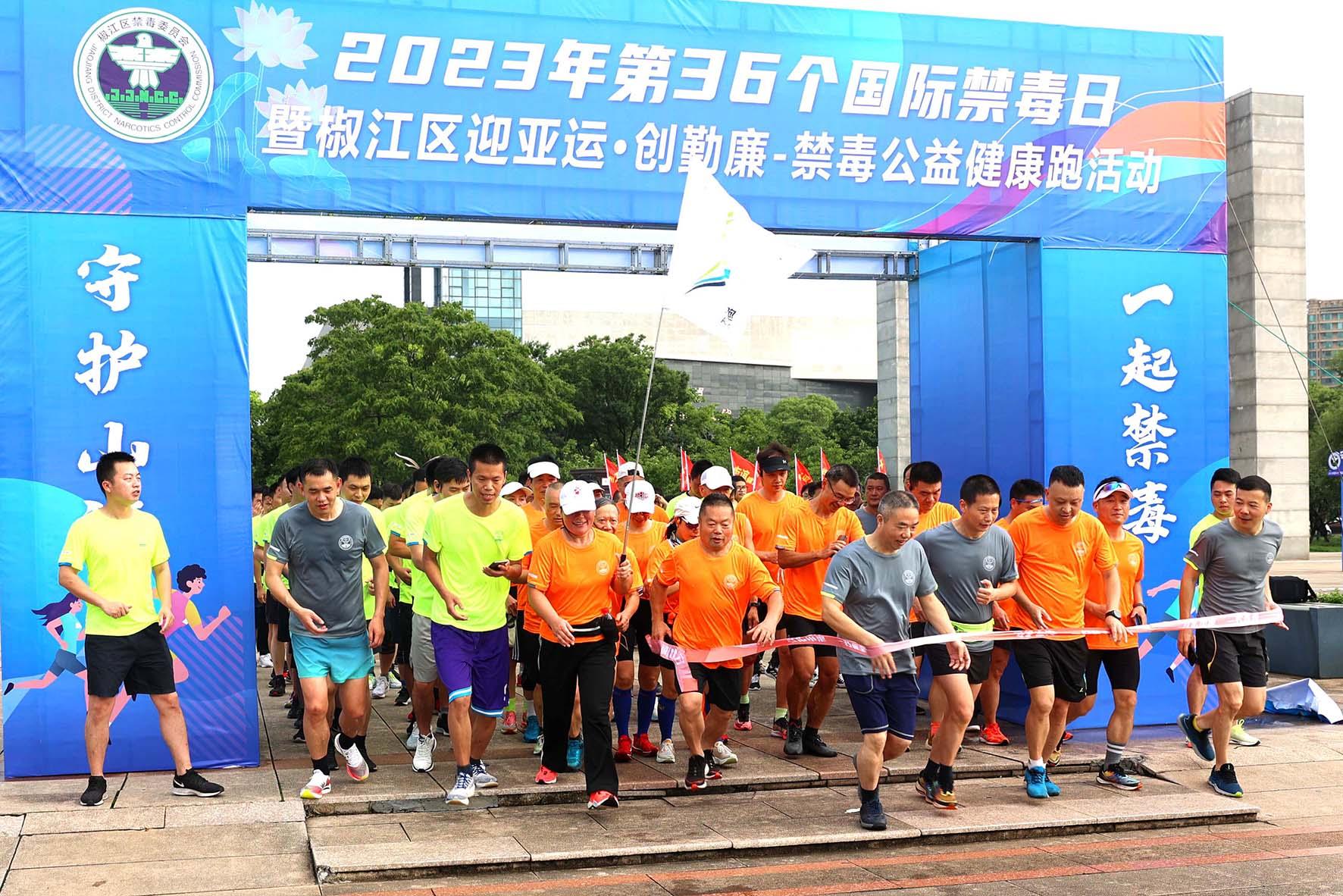 6月25日,浙江省臺州市公安局椒江分局在市民廣場主辦“守護山海 一起禁毒”為主題的“6·26”國際禁毒日公益健康跑宣傳活動。