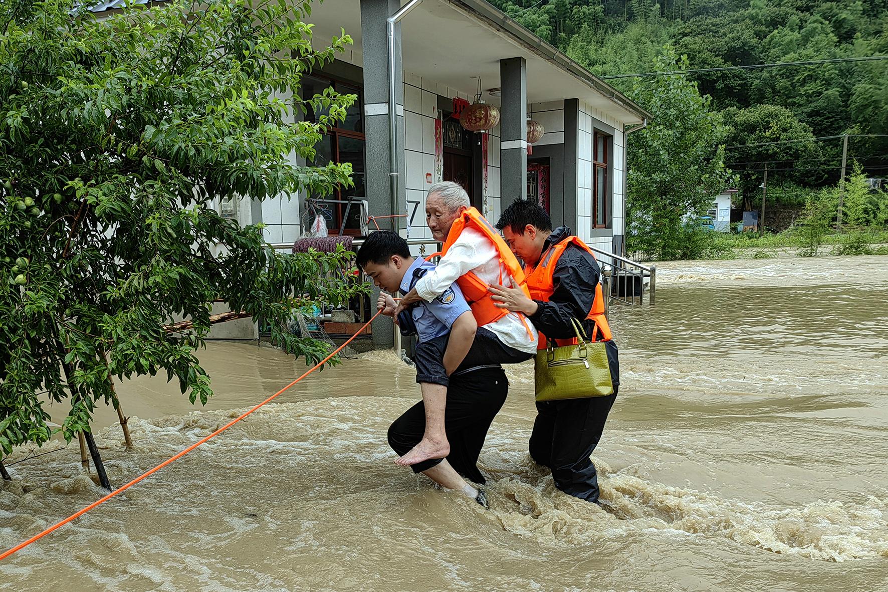 7月5日,因遭持續(xù)強(qiáng)降雨天氣侵襲,安徽省寧國市公安局中溪派出所轄區(qū)中溪鎮(zhèn)鳳凰村河道水位猛漲,2位老人被困。情急時(shí)刻,正在開展防汛搶險(xiǎn)工作的民輔警攜帶救援工具與政府工作人員迅速趕到現(xiàn)場,成功將2名老人轉(zhuǎn)移到安全區(qū)域。