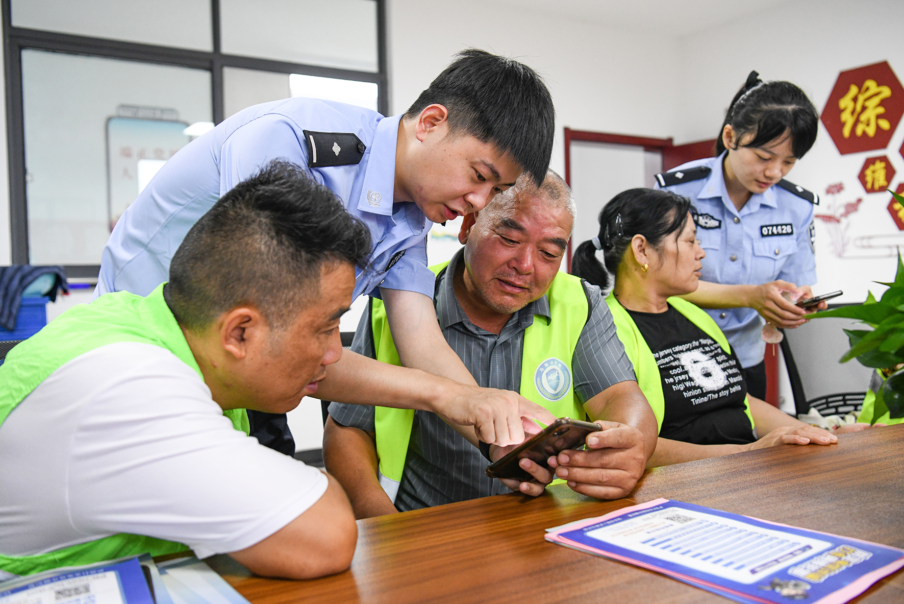 8月28日,在江蘇省如城街道顧莊社區(qū),社區(qū)民警正在向群眾普及文明上網(wǎng)以及防范網(wǎng)絡(luò)詐騙等知識。