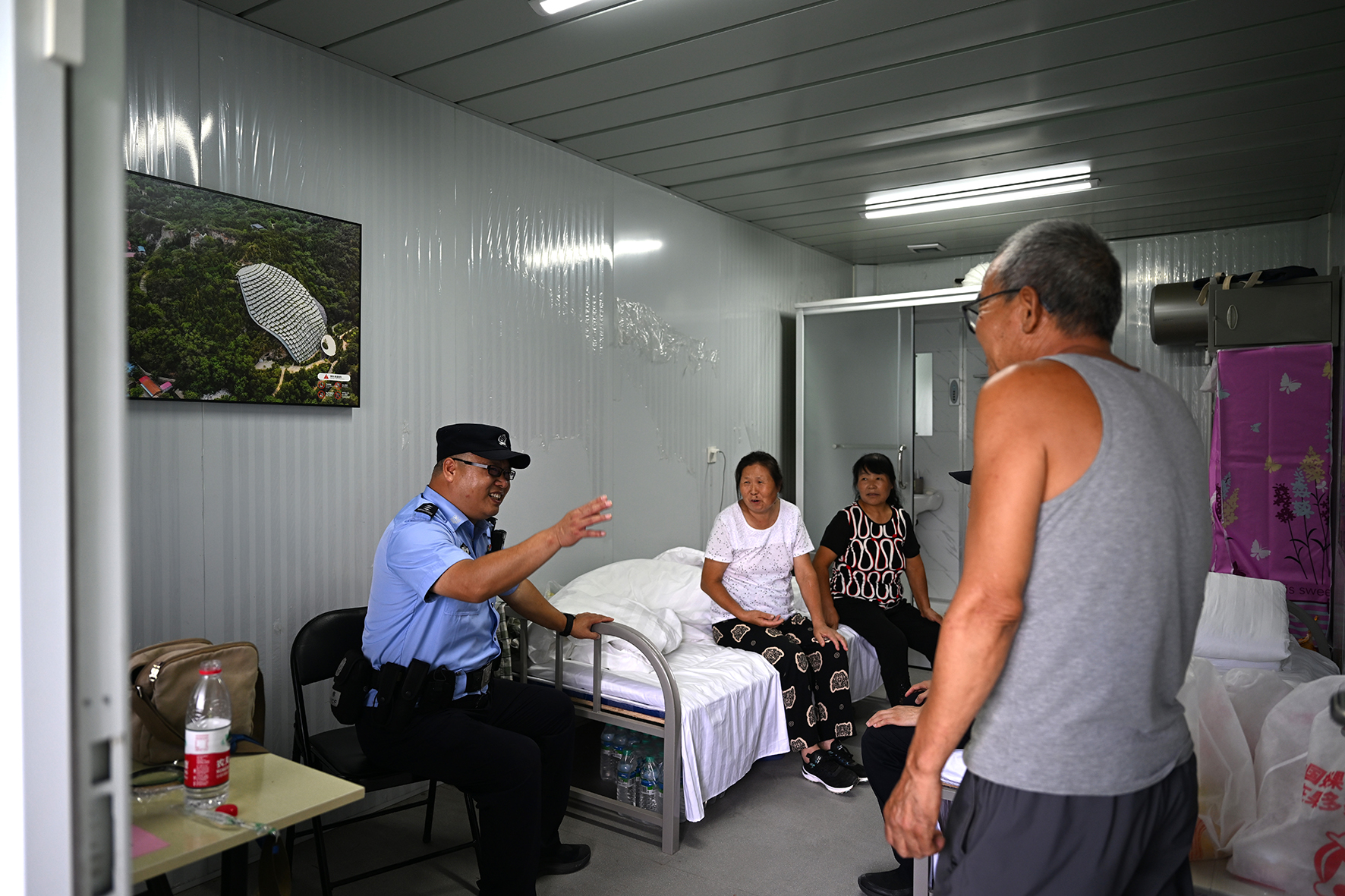 房山分局治安支隊(duì)副支隊(duì)長焦華告訴記者,目前正是受災(zāi)群眾逐漸轉(zhuǎn)移入住階段,警務(wù)站每日安排7名警力值守,安撫群眾情緒,防止矛盾發(fā)生,同時(shí)還負(fù)責(zé)協(xié)助主責(zé)部門不斷完善安置點(diǎn)的安全管理。