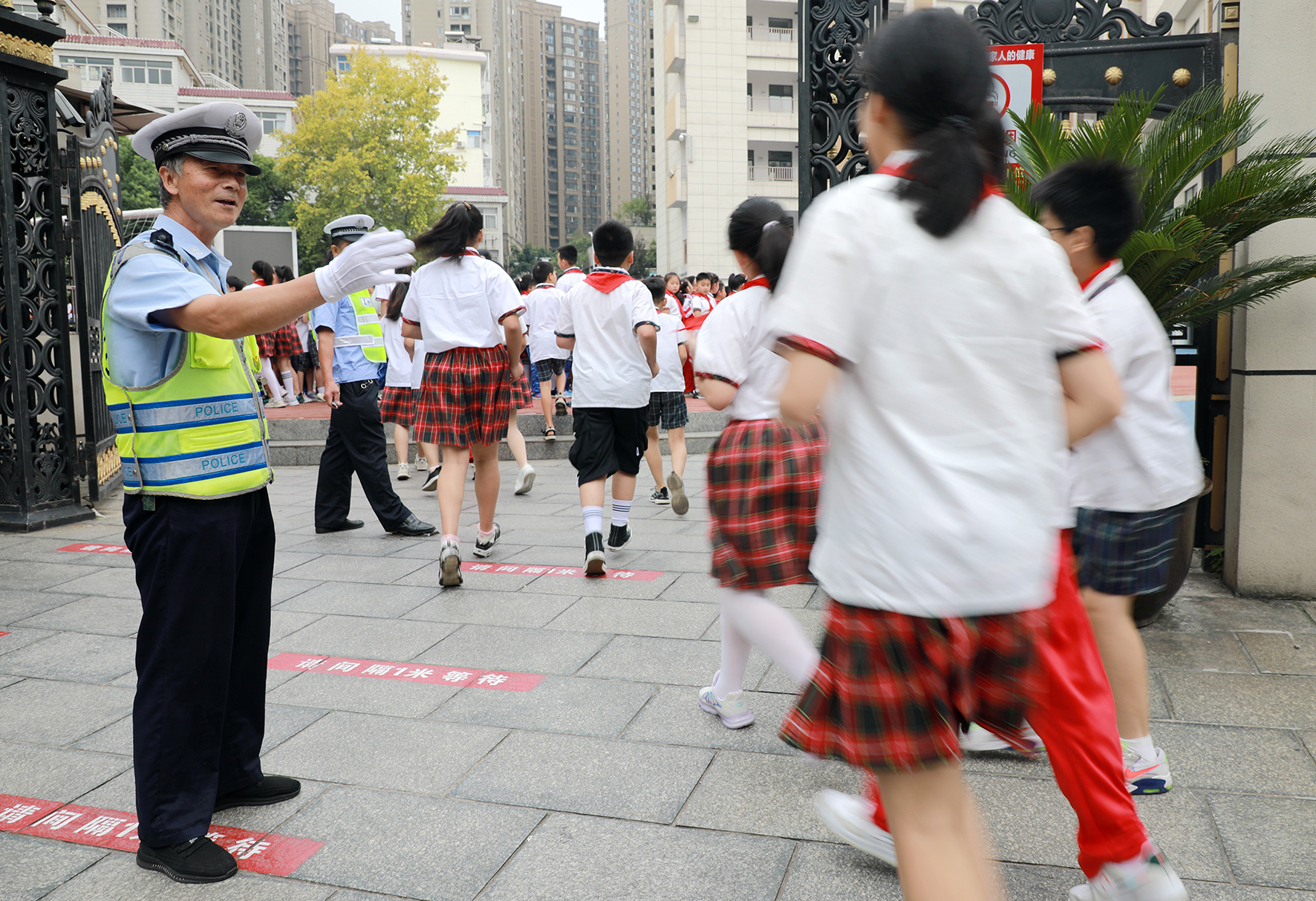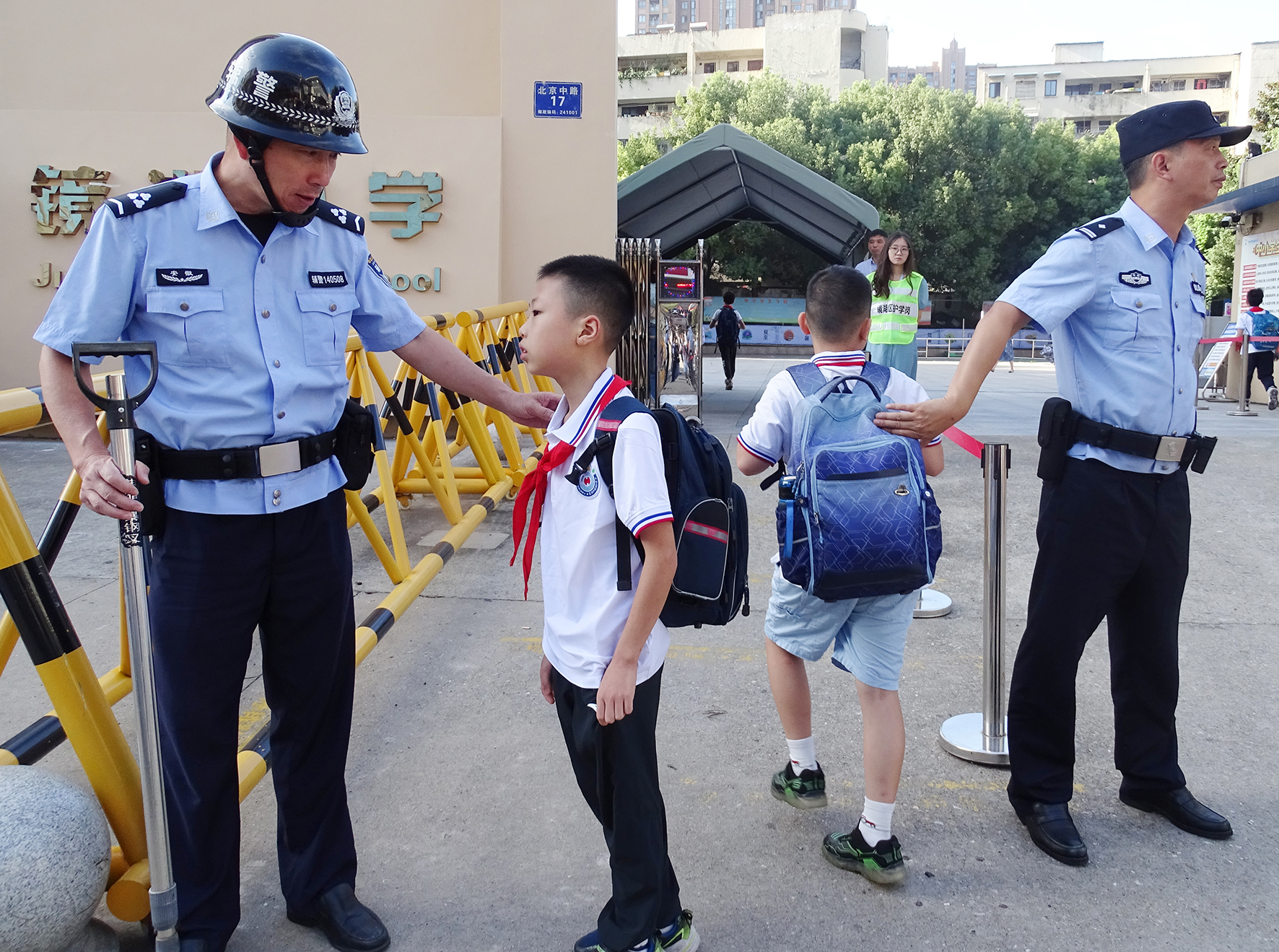 9月1日,安徽省蕪湖市公安局鏡湖分局提前部署,安排警力在轄區(qū)各學(xué)校、幼兒園門(mén)前執(zhí)勤,為師生撐起“安全傘”。