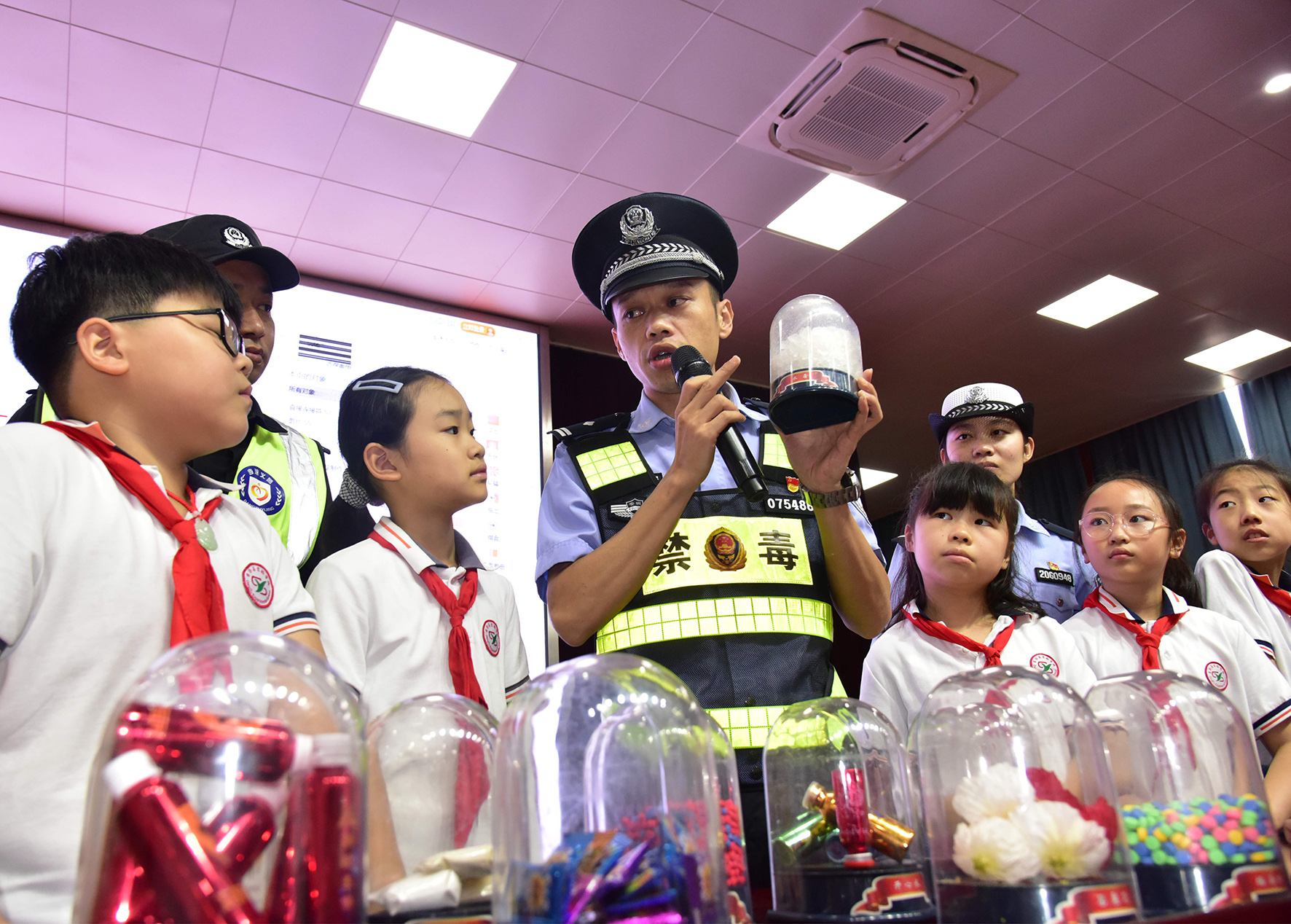 9月1日,安徽省當(dāng)涂縣公安局禁毒部門(mén)聯(lián)合交管大隊(duì)民警走進(jìn)實(shí)驗(yàn)小學(xué),為同學(xué)們講解道路交通安全、禁毒等知識(shí)。