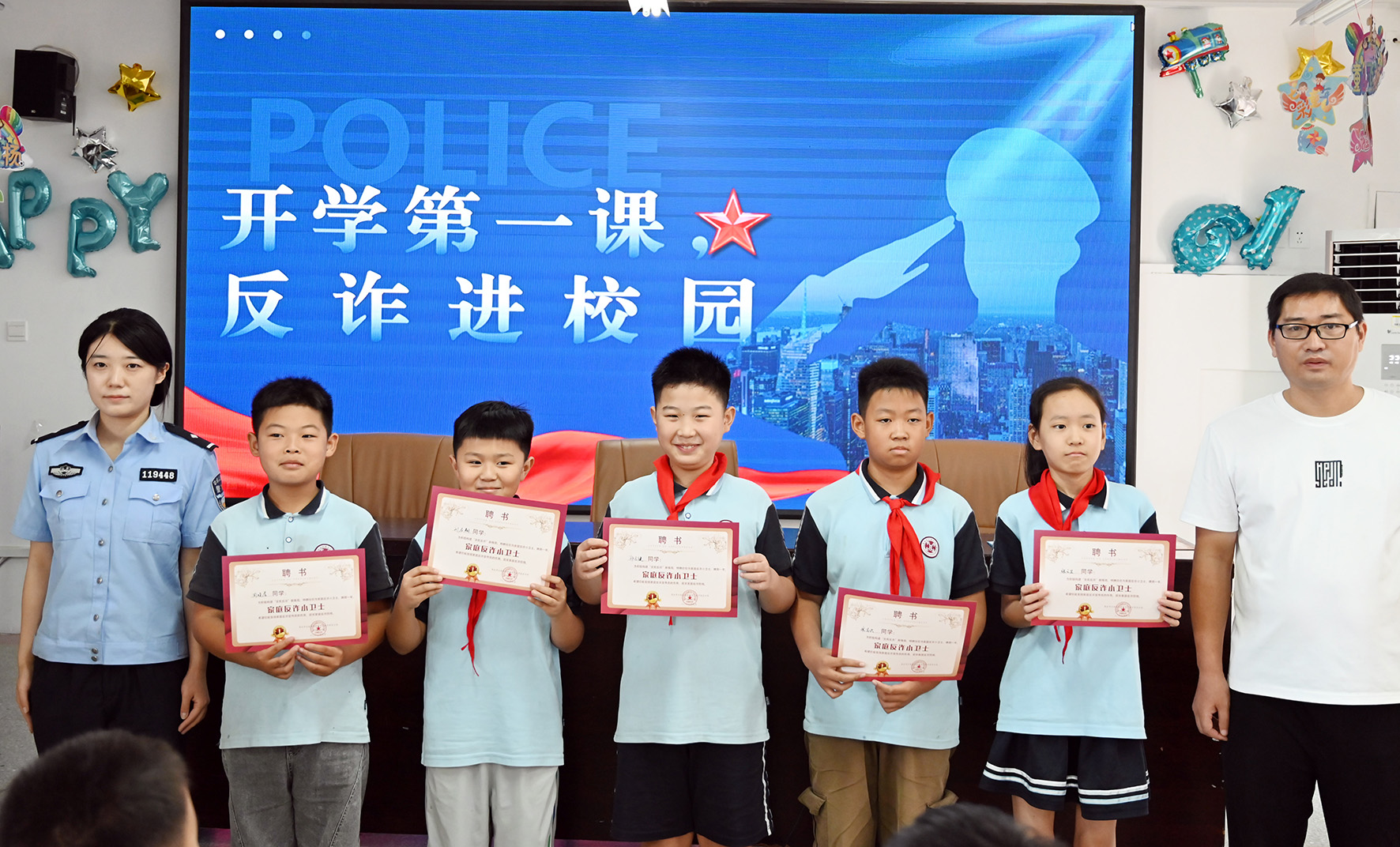 9月1日,山東省棗莊市公安局高新分局興城派出所民警走進(jìn)轄區(qū)興城中心小學(xué)舉行“家庭反詐小衛(wèi)士”聘任儀式,為156名學(xué)生傳授反詐知識(shí),頒發(fā)了“家庭反詐小衛(wèi)士”聘書(shū)。