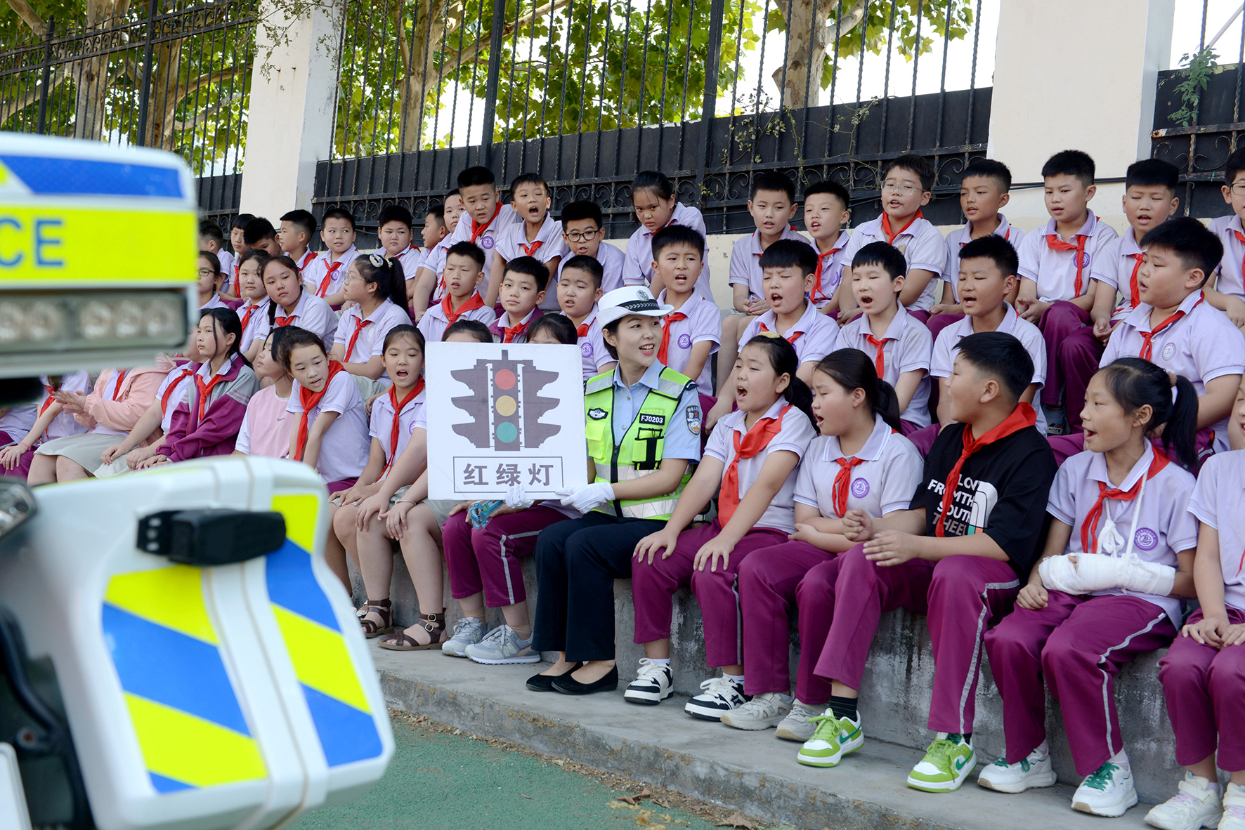9月1日,山東省棗莊市公安山亭分局交警大隊(duì)民警走進(jìn)山亭區(qū)第二實(shí)驗(yàn)小學(xué)開(kāi)展“交通安全第一課”宣傳活動(dòng)。