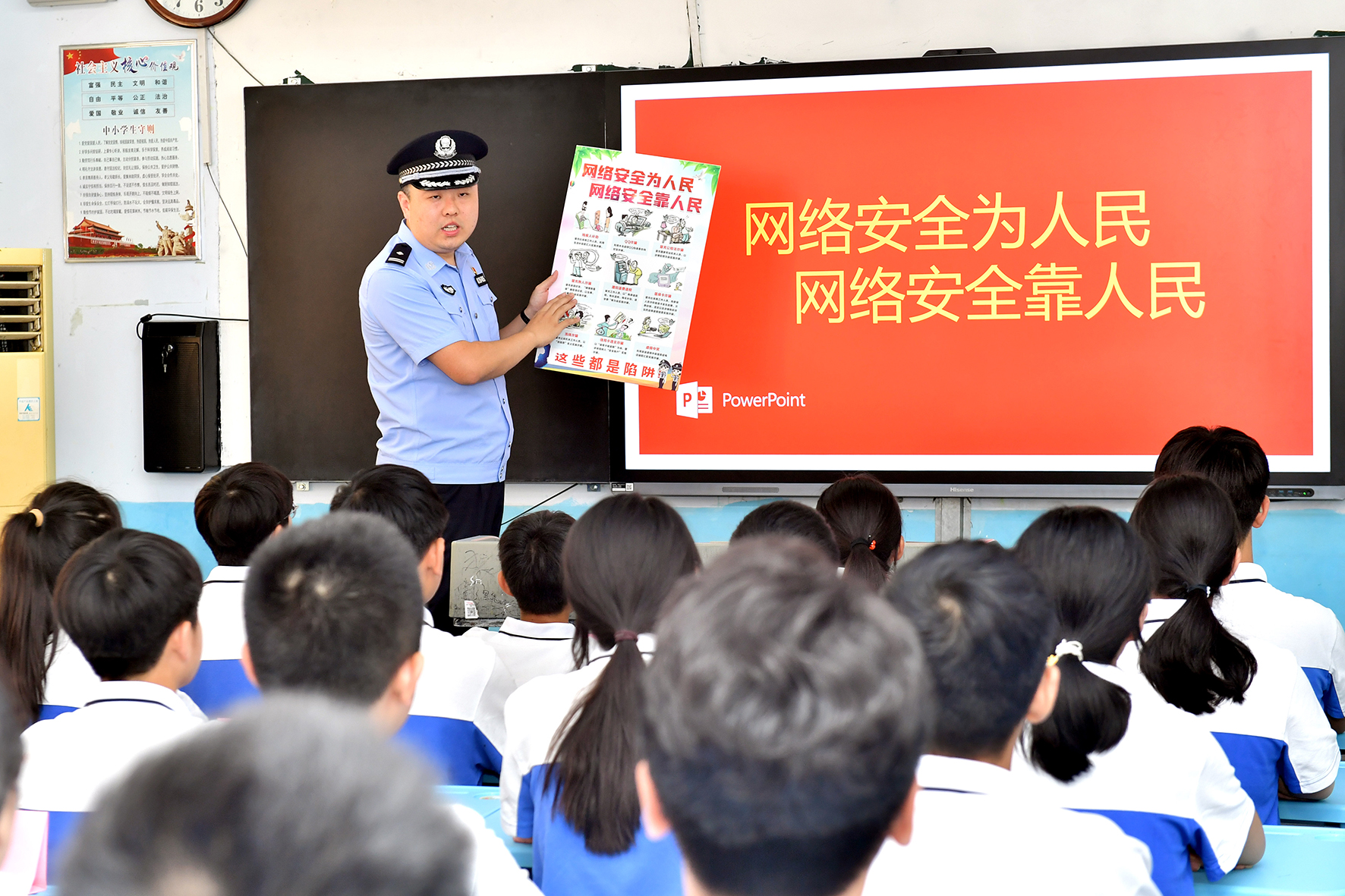 9月14日,安徽省舒城縣公安局城東派出所民警走進(jìn)轄區(qū)舒城職業(yè)學(xué)校電教課堂,向同學(xué)們宣傳網(wǎng)絡(luò)安全知識(shí)。