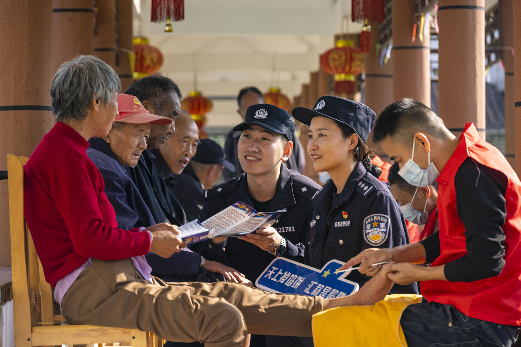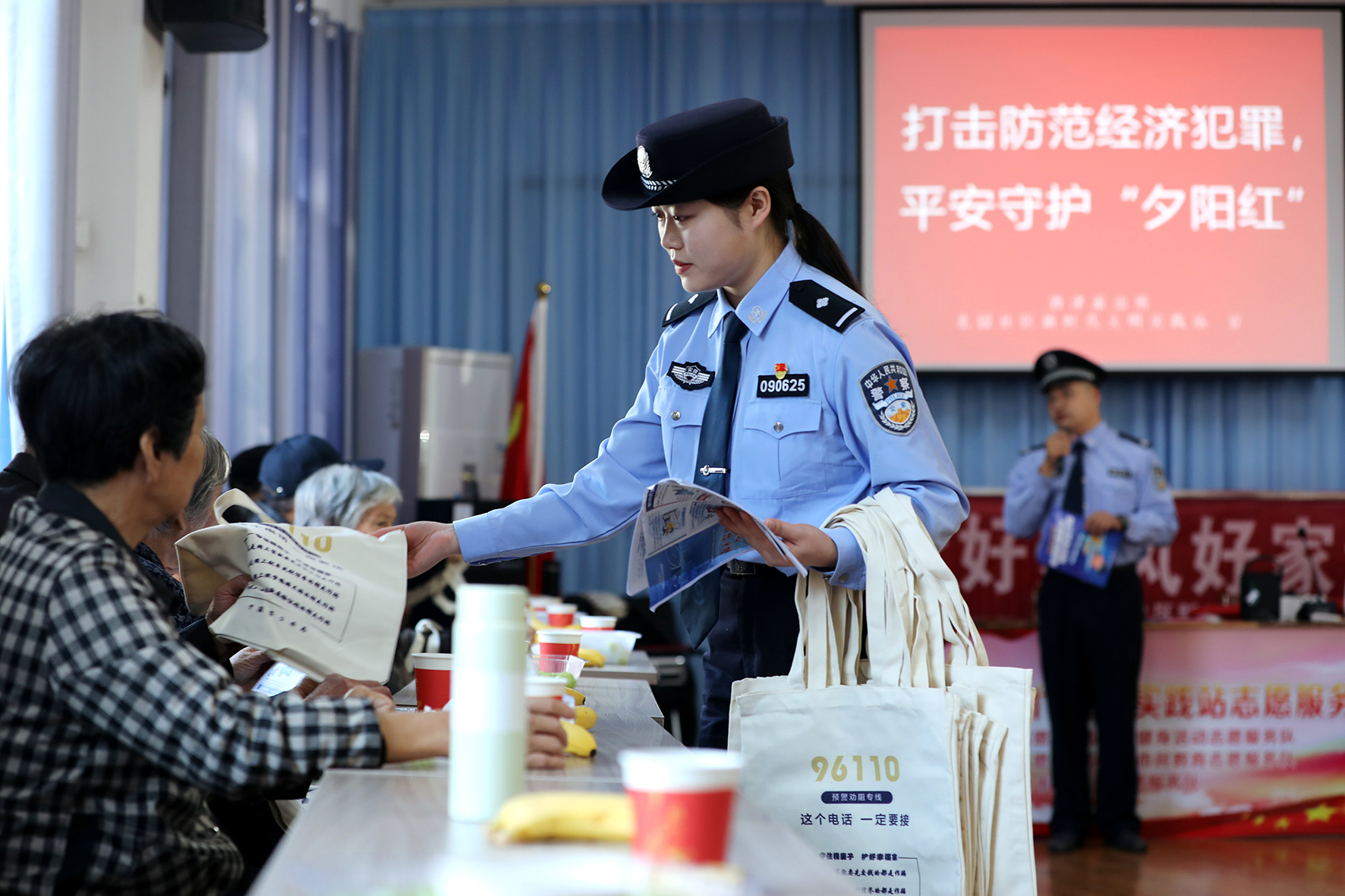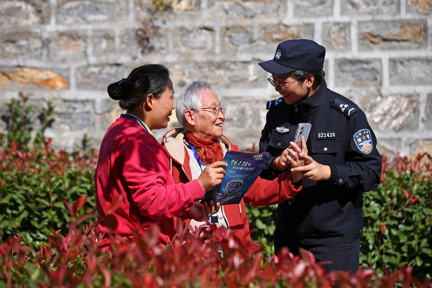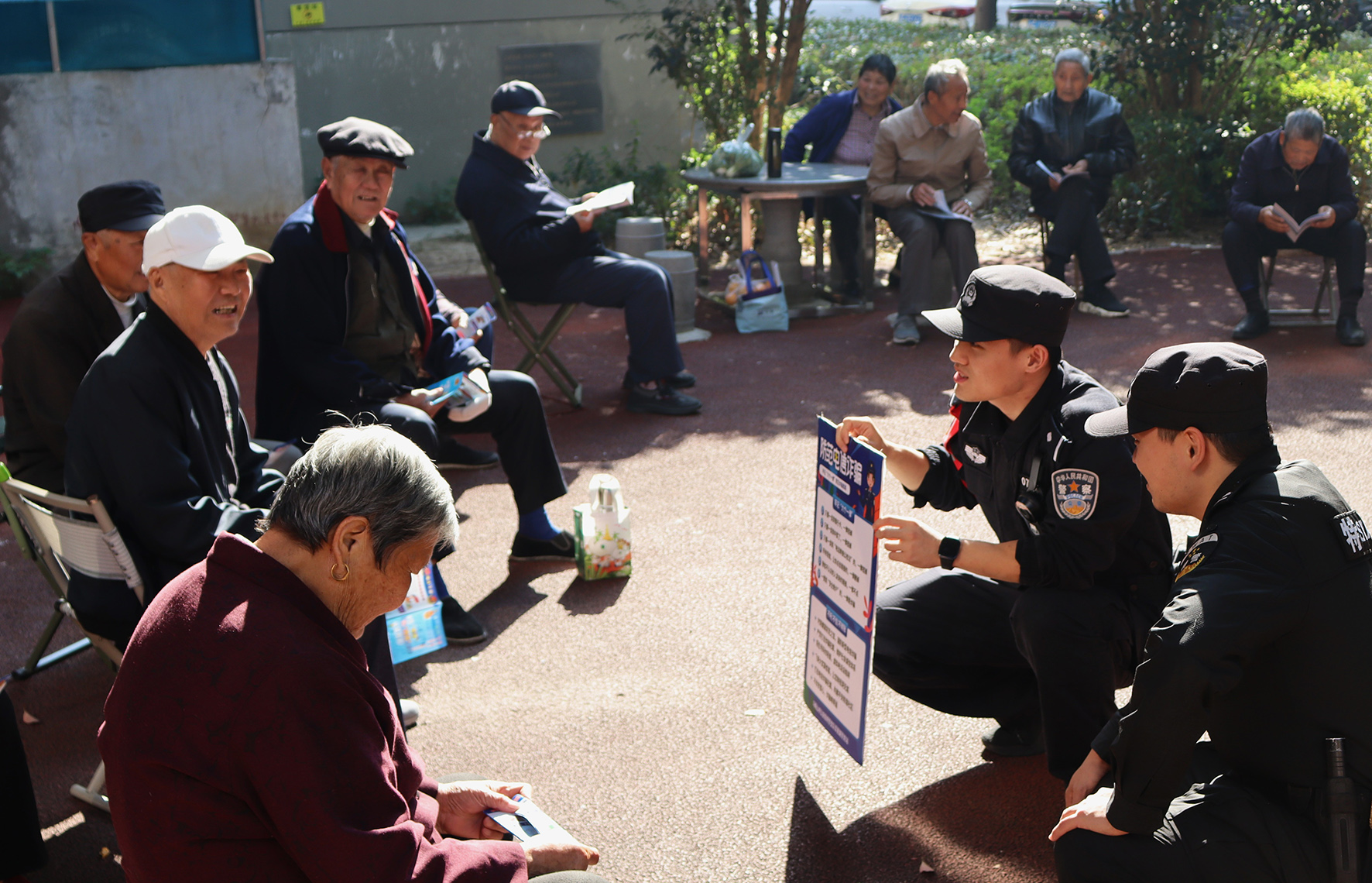 10月22日,山東濟(jì)南養(yǎng)老服務(wù)中心,濟(jì)南市公安局市中區(qū)分局十六里河派出所輔警正在對(duì)老人進(jìn)行反電詐宣傳教育。