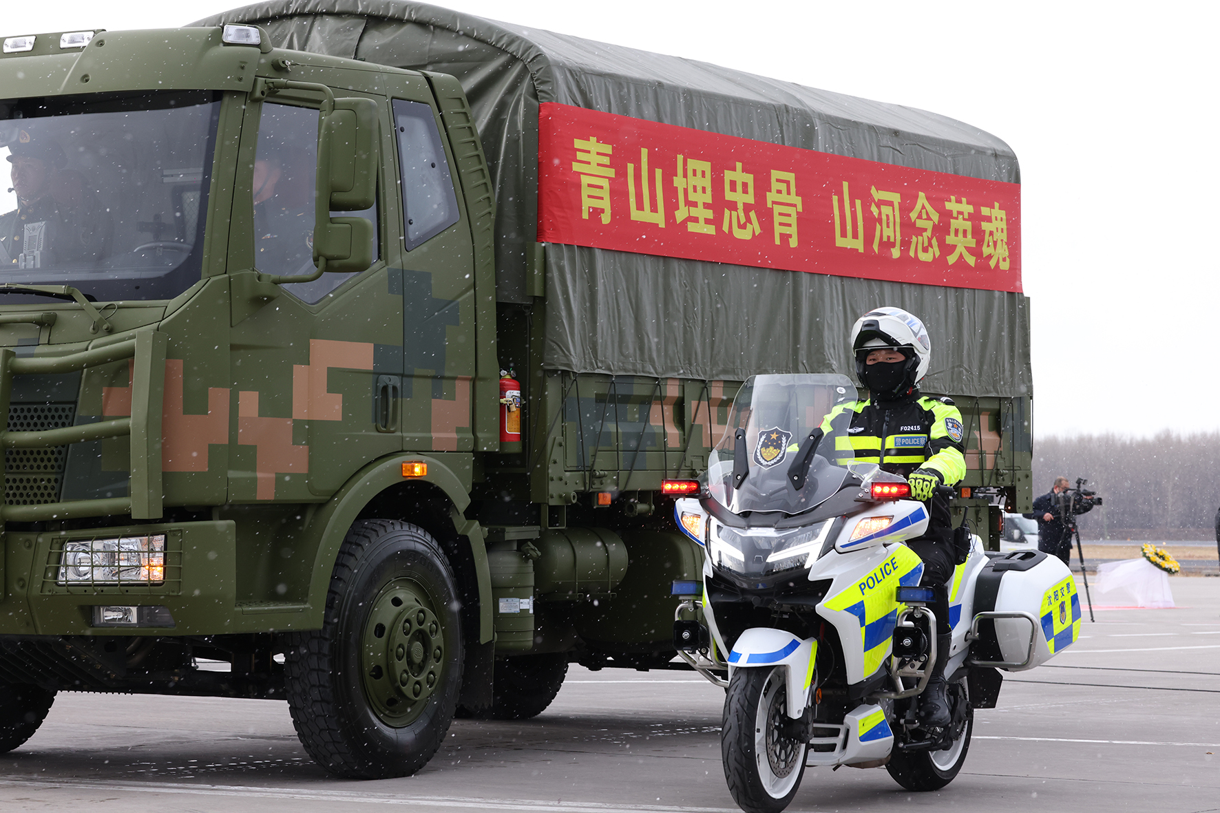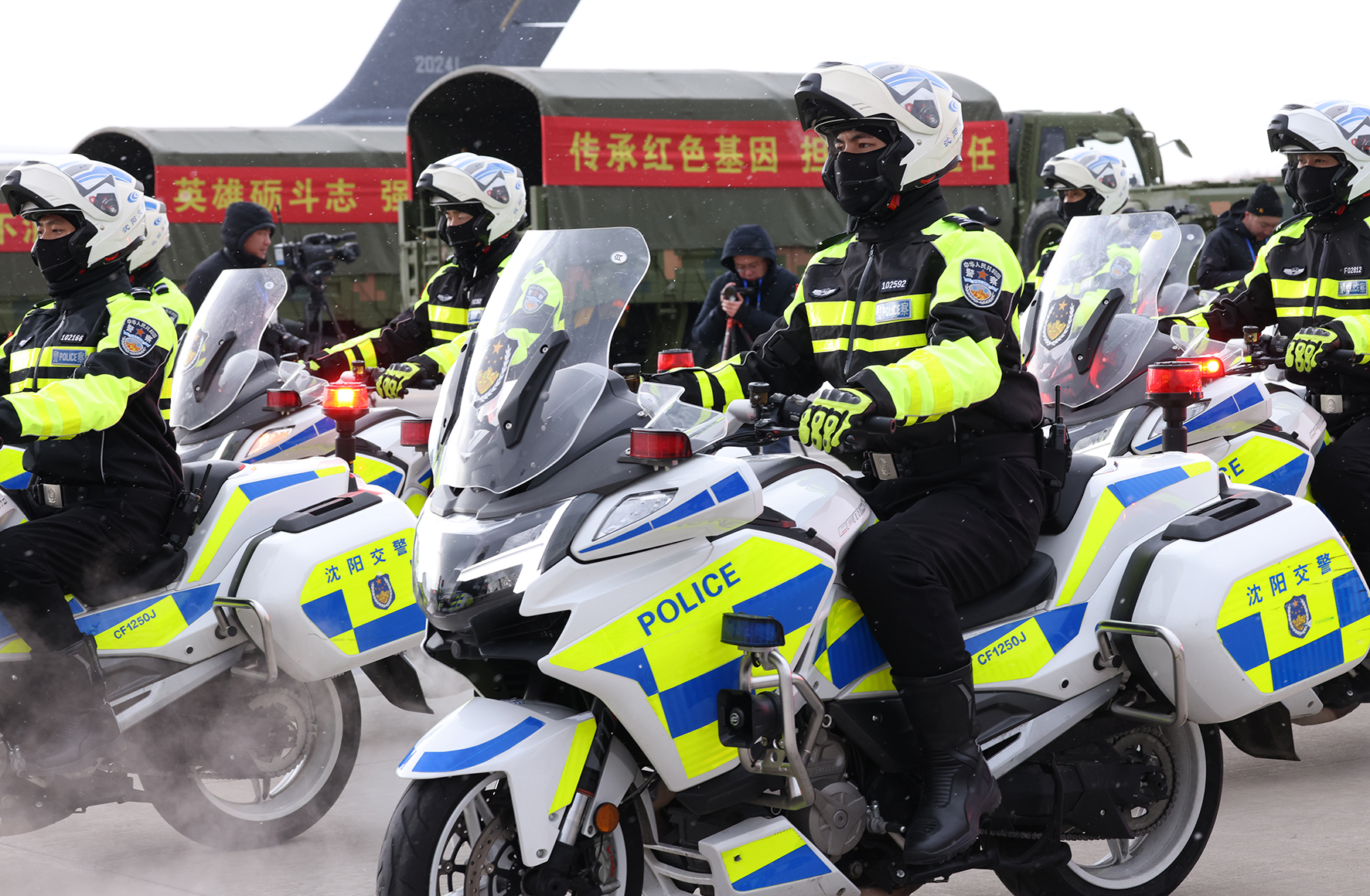 11月23日,第十批在韓中國人民志愿軍烈士遺骸回國。遼寧省沈陽市公安局交通警察局精心組織,嚴(yán)格選拔出由45車組成的摩托車護(hù)衛(wèi)車隊,擔(dān)負(fù)護(hù)衛(wèi)任務(wù),迎接烈士回家。